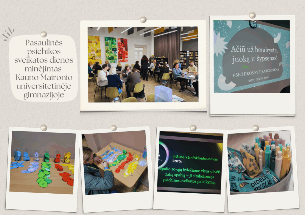 Spalio 10-ąją Kauno Maironio universitetinėje gimnazijoje buvo paminėta Pasaulinė psichikos sveikatos diena. Mokiniai buvo kviečiami stabtelėti ir sąmoningai atkreipti dėmesį į savo emocinę savijautą, o mokytojai – dalyvauti žaismingoje viktorinoje, kurią vainikavo bendrystė, juokas ir šypsenos.