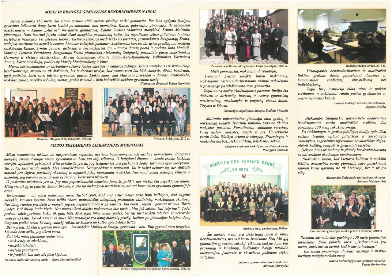 Kauno Maironio universitetinei gimnazijai – 150