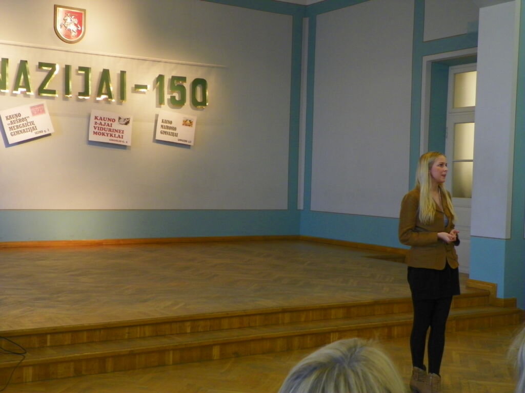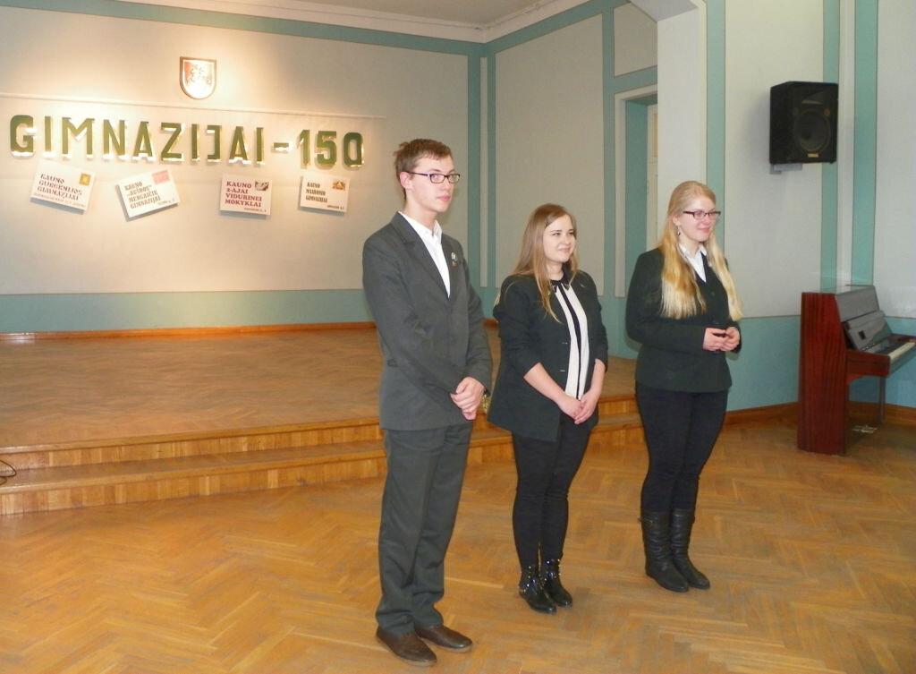Kovo 28 dieną (penktadienį) įvyko Studijų savaitės uždarymas. Į gimnazijos aktų salę gausiai susirinko mokiniai, mokytojai, aukštųjų mokyklų dėstytojai, buvę gimnazijos mokiniai. Renginio dalyvius pasveikino gimnazijos mišrus choras. Nuotaikingai renginį vedė Profesinio konsultavimo koordinacinio centro (PKKC) vedėja Aurelija Naseckaitė.