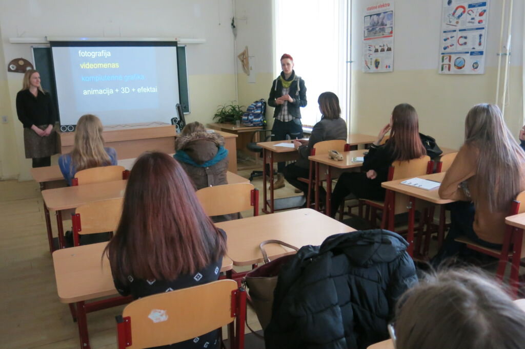 Nemažai mokinių apsilankė Mykolo Romerio universiteto Verslo ir medijų mokyklos programų pristatymuose (41 mokinys). Buvo kalbama apie 6 programas, kuriose informatika ir skaitmeninis turinys yra dėstoma anglų kalba. Tai įdomi programa, kurios tikslas – rengti informatikos specialistus kompiuterinių žaidimų, audiovizualinių efektų ir kitokios skaitmeninės produkcijos srityse. Ją baigę absolventai gauna du diplomus. Mokiniai domėjosi ir Verslo informatikos programa. Ją studijuojant galima pasirinkti nuolatines studijas – 3,5 metų arba ištęstas – 5 metai. Baigus suteikiamas informatikos bakalauro laipsnis. Šios programos tikslas – parengti informatikos specialistus, kurie gebės projektuoti ir prižiūrėti verslo valdymo programinę įrangą. Tai labai perspektyvi specialybė, kadangi atitinka naujo šalies ekonominio laikotarpio reikalavimus.