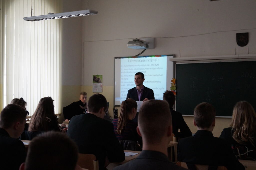 Mokiniams ypač didelį įspūdį paliko MRU Politikos ir vadybos fakulteto paskaita, kurioje buvo pristatomos dalykinės anglų ir kitų užsienio kalbų bei vertimo ir redagavimo studijų programos. Apie studijų programas mokiniams pasakojo užsienio kalbų dėstytoja indėnė, kuri moka kelias užsienio kalbas ir jau neblogai yra pramokusi lietuviškai. Klausytojams buvo įdomu išgirsti apie humanitarinių mokslų išskirtinumą ir apskritai apie studijas iš visai kitos kultūros, kitokio mentaliteto atstovės. Taip pat daug gerų žodžių susilaukė VDU Humanitarinių mokslų fakulteto pristatymai. Lektoriai dekanė, docentė dr. Rūta Eidukevičienė ir prodekanas, docentas dr. Giedrius Jaunauskas sužavėjo mokinius įdomiu paskaitų-pokalbių turiniu, įspūdingais retoriniais gebėjimais. Puikia iškalba išsiskyrė ir VDU Katalikų teologijos fakulteto dekanas Benas Ulevičius, pristatęs katalikų teologijos ir religijos pedagogikos programas. Lektorius nedemonstravo skaidrių, jis įtraukė visus į prasmingą diskusiją apie studijas, o paskui ir apie gyvenimo vertybes ir žmogaus pasirinkimus. Po diskusijos dalyviams kilo noras apsilankyti dekano paskaitoje, į kurią jie tuojau pat buvo mielai pakviesti. Šie mokiniai artimiausiu laiku lankysis VDU Katalikų teologijos fakultete ir kartu su studentais klausysis gerb. Beno Ulevičiaus paskaitos.