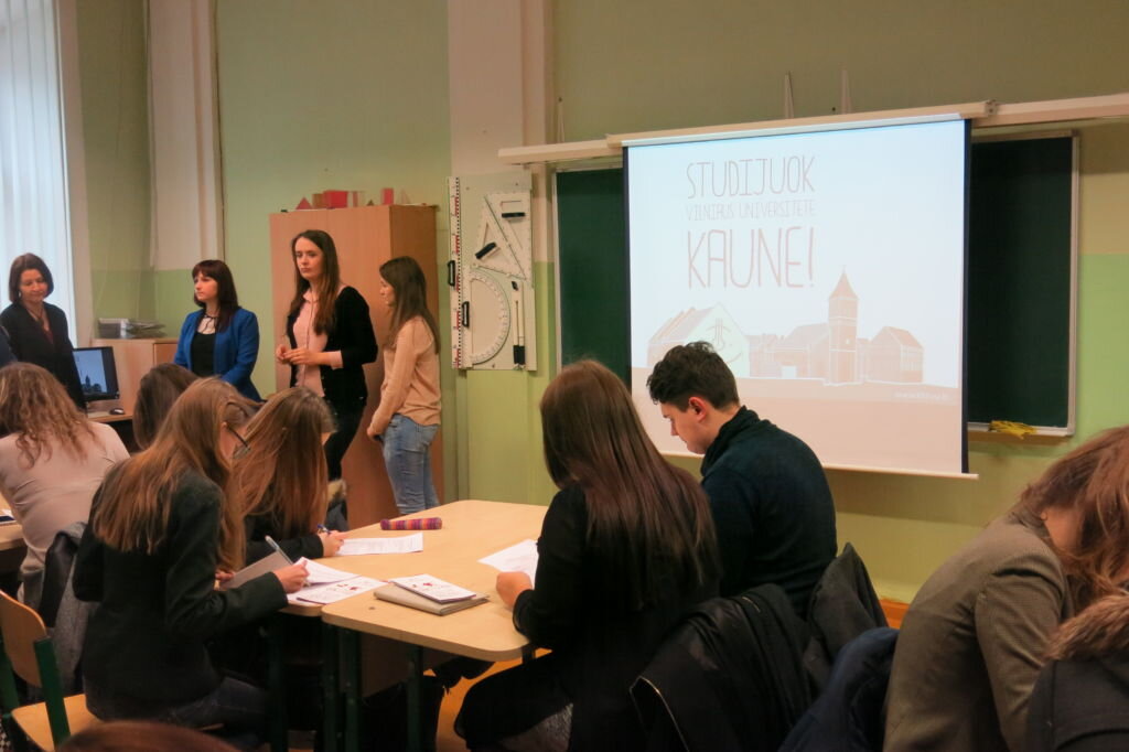 Kovo pirmoji, kalendorinio pavasario pirmoji diena, simboliškai sutapo su „Studijų savaitės“ aukštųjų mokyklų studijų pristatymu. Juk tai pirmasis būsimųjų studentų susitikimas su pageidaujamą specialybę studijuojančiais jaunuoliais ir jų dėstytojais. Iš viso šią dieną gimnazijoje su Lietuvos sveikatos mokslų universiteto (LSMU), Lietuvos sporto universiteto (LSU), Aleksandro Stulginskio (ASU) ir Vytauto Didžiojo universiteto (VDU) programomis susipažino 512 Kauno miesto ir rajono mokinių.