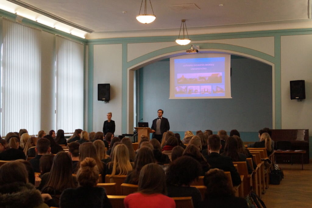 Apie šio universiteto Veterinarijos fakultetą kalbėjo Gyvulininkystės technologijos fakulteto prodekanas Evaldas Šlyžius ir studentės. Mokiniai (50) sužinojo apie studijų perspektyvas, konkursinio balo sandarą, būsimą darbą, gyvulininkystės reikšmę žmonių gyvenimui ir pramonei. Universitetas užtikrina darbo vietą trejiems metams. Iš studentų mokiniai sužinojo apie ERASMUS praktikos galimybes, studentų laisvalaikį. Gimnazistams labai patiko informatyvus pristatymas.