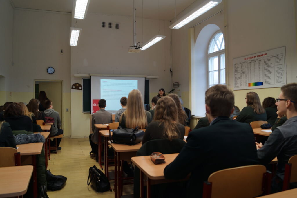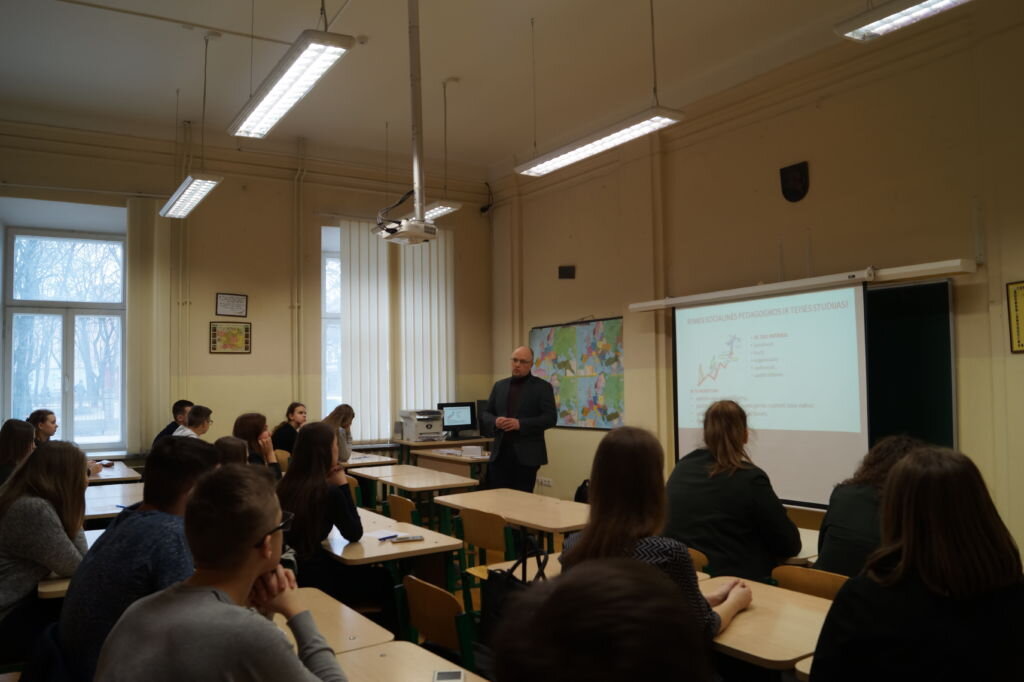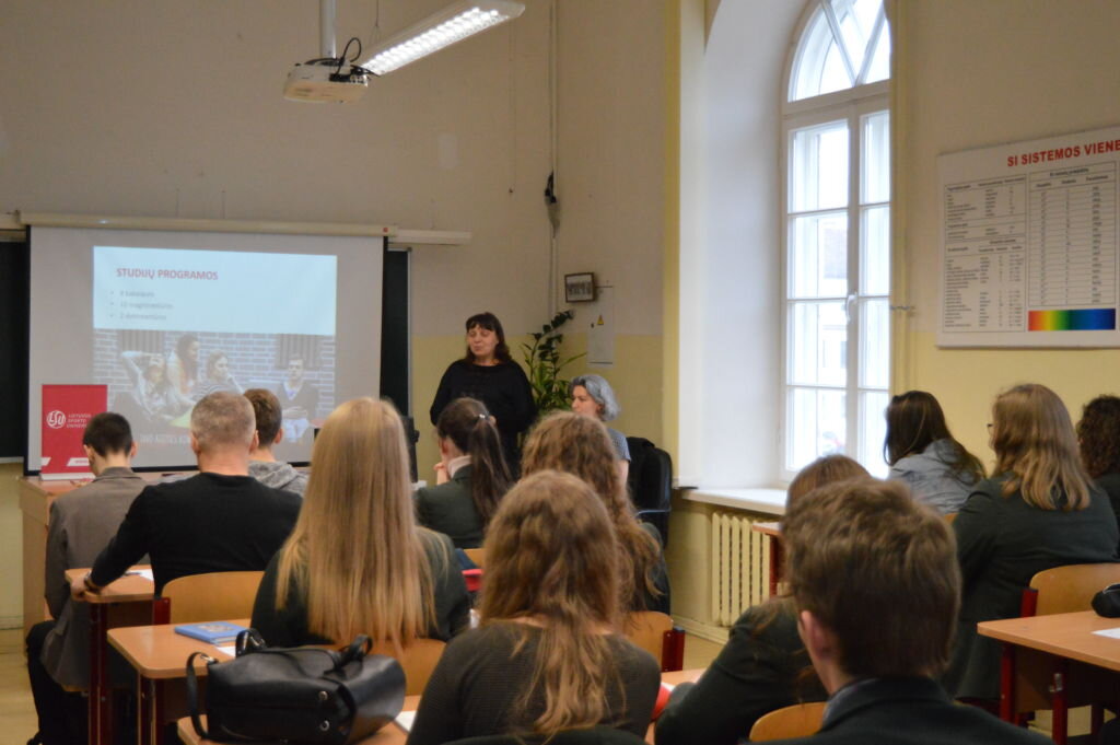 Antradienį, vasario 28 dieną, gimnazijoje vyko socialinių mokslų studijų diena. Socialinių, teisės, ugdymo, verslo ir viešosios vadybos mokslų programas mokiniams pristatė net septynios aukštosios mokyklos. Jaunuolius aukštųjų mokyklų dėstytojai ir studentai skatino stebėti, suvokti ir keisti pasaulį, išdrįsti abejoti kitų ir savo paties sprendimais, ieškoti ir siūlyti netikėtas alternatyvas. Šiais laikais siaura specializacija, susitelkianti ties viena profesija, nuvertėja. Šią studijų dieną mokiniai buvo skatinami atrasti save ir savo nišą, praplėsti požiūrį į pasaulį, įgyvendinti savo idėjas. Renginyje apsilankė 662 dalyviai iš įvairių Kauno bendrojo ugdymo mokyklų. Stojimo į aukštąsias mokyklas naujoves 2017 ir 2018 metais pristatė LAMA BPO valdybos vyresnioji specialistė Odeta Kardauskė.