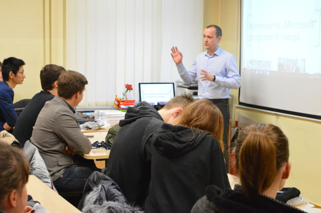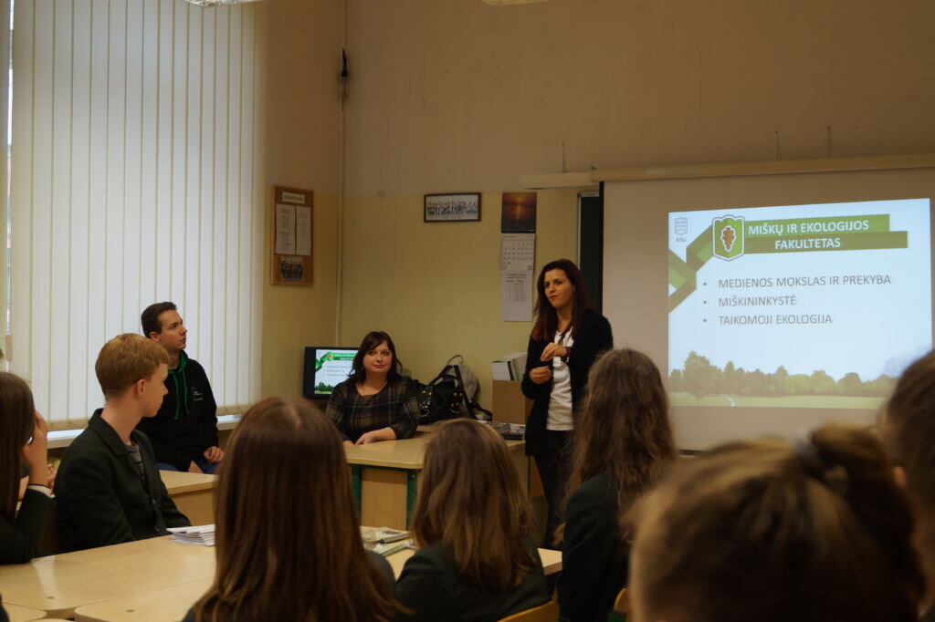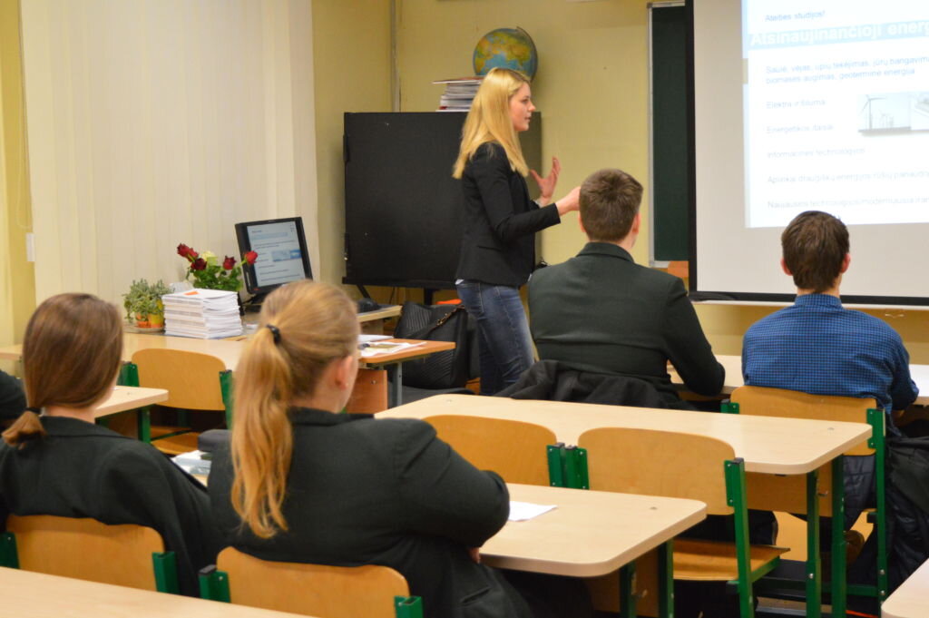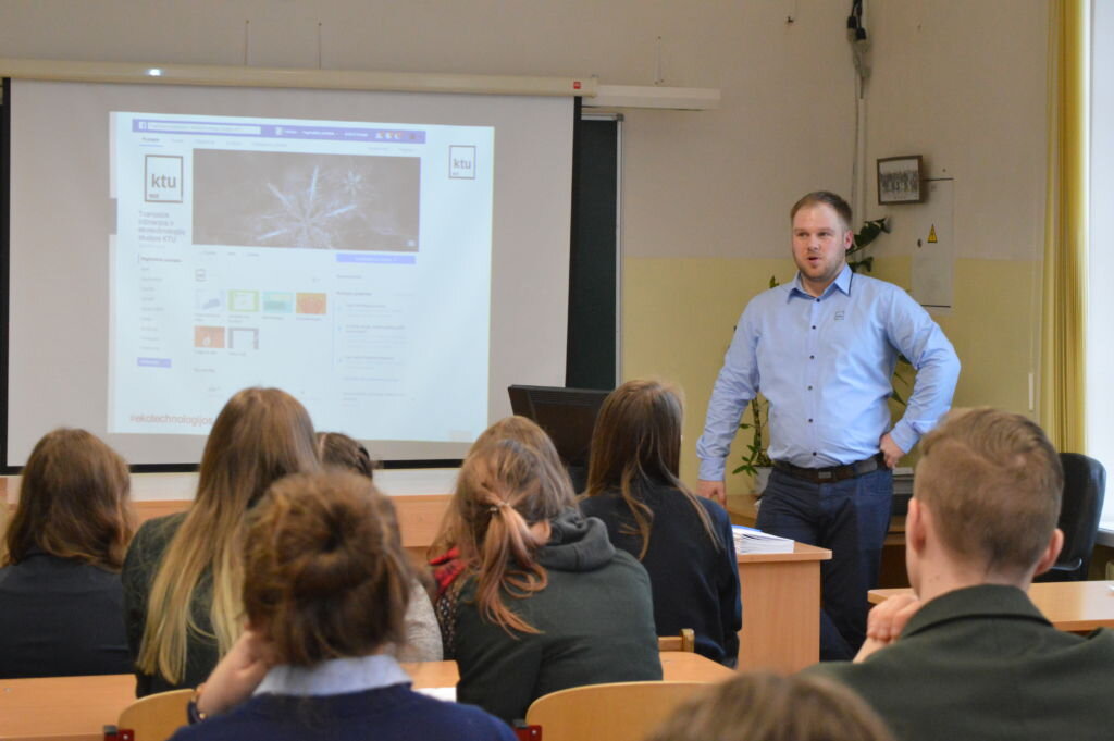 Kovo 1-ąją, pirmą kalendorinio pavasario dieną, mokiniai skubėjo į fizinių mokslų ir technologijų studijų renginius. Šešios Lietuvos aukštosios mokyklos pristatė matematikos, inžinerijos, informatikos, fizinių ir technologijų mokslo studijų programas. Apie nenutrūkstamą studento pažinimo, tobulėjimo kelionę mokiniai sužinojo dalyvaudami Kauno technologijos universiteto šešių fakultetų net 32-uose studijų programų pristatymuose. Daugiausia dėmesio susilaukė medžiagos ir nanotechnologijos, taikomosios fizikos ir matematikos programos. Daug norinčių pritraukė Vytauto Didžiojo universiteto Informatikos fakulteto pristatomos programos: informatikos sistemų, matematikos ir jos taikymo, multimedijų ir interneto technologijų. Fakulteto darbuotojų teigimu, didžioji studijų kokybės dalis priklauso nuo matematikos išmanymo. Taigi mokykloje į šio dalyko mokymąsi nereikėtų žiūrėti pro pirštus. Šis universitetas taip pat supažindino su Gamtos mokslų fakulteto studijų programomis. Besidomintiems IT įdomias studijų programas pristatė ir Vilniaus universiteto Kauno fakultetas, Mykolo Romerio universiteto Ekonomikos ir verslo fakultetas. Dėstytojai kantriai atsakinėjo į mokinių klausimus, pasakojo apie galimybę dalyvauti studentų mainų programose. Šių mokslo metų studijų savaitės naujiena – Klaipėdos universitetas. Jūros technologijų ir gamtos mokslų fakulteto pristatytos programos taip pat sulaukė nemažai mokinių dėmesio. Apie seniausias ir reikalingiausias specialybes pasakojo ne tik dėstytojai, bet ir ten studijuojantis buvęs mūsų gimnazistas Aurimas Pranaitis.