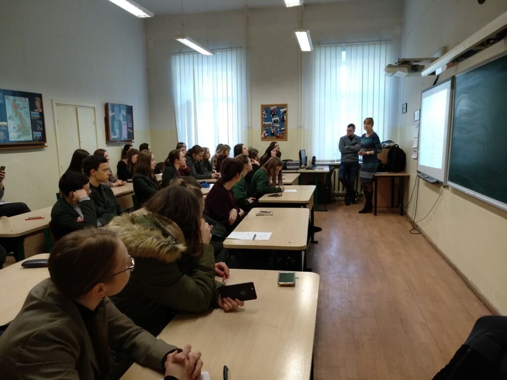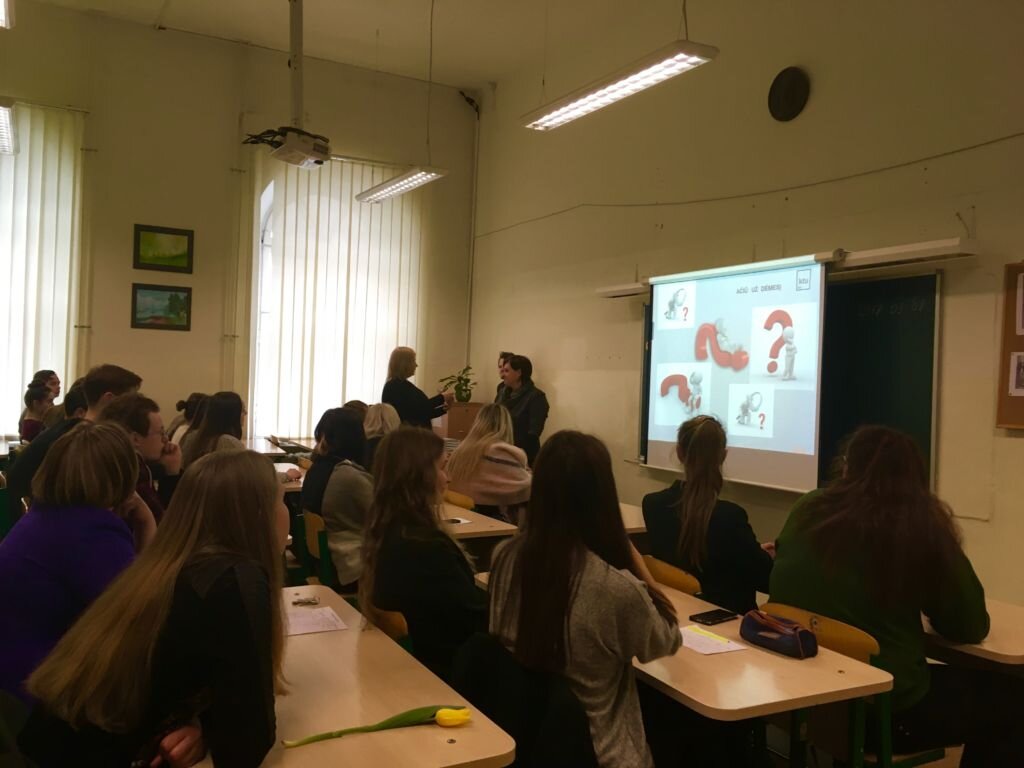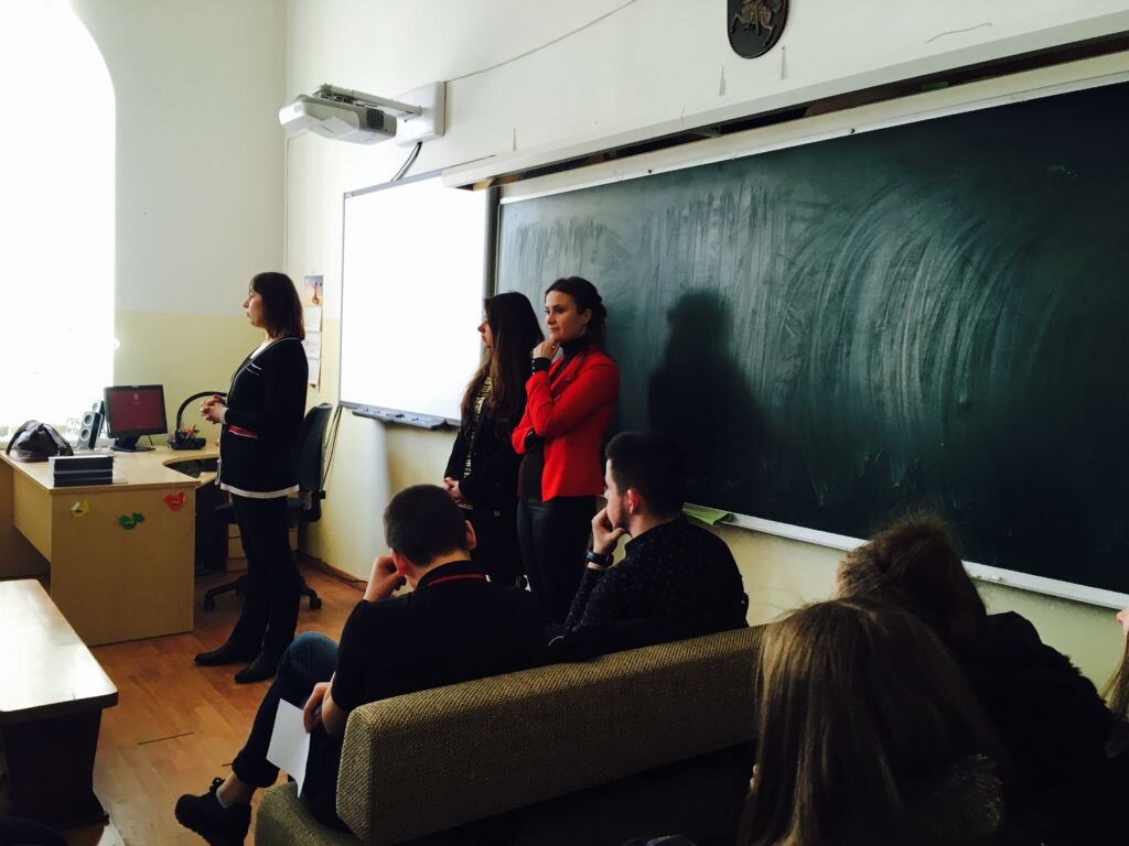 Antradienį, kovo 6 dieną, gimnazijoje vyko socialinių mokslų studijų diena. Socialinių, ekonomikos, teisės, politikos mokslų, filosofijos, edukologijos, verslo ir viešosios vadybos mokslų programas mokiniams pristatė net septyni universitetai (KTU, LSU, ASU, VDU,VU, VU Kauno fakultetas, MRU) ir Kauno kolegija. Mokiniai bendravo su aukštųjų mokyklų dėstytojais, studentais. VDU Ekonomikos ir vadybos fakulteto prodekanas M. Račkauskas papasakojo apie universitetą, jame vykdomas programas, pažymėjo, kad jų mokymo įstaiga skiriasi nuo kitų universitetų, nes buvo atkurta išeivijos lietuvių dėka ir veikia „Artes liberals“ principu, leidžiančiu laisvai rinktis studijų dalykus. Prodekanas pažymėjo, kad VDU studentai turi galimybę vienu metu šalia pagrindinės specialybės įgyti ir gretutinės specialybės sertifikatą. Lektorius išsamiai papasakojo apie kiekvieną fakulteto programą, išskyrė populiariausias, jų kitimo dinamiką, pabrėždamas, kad jų mokyklos diplomas sudaro galimybę būti ne samdiniu, o savo verslo valdytoju. VU Kauno fakulteto dėstytoja doc, dr. R. Pušinaitė-Gelgotė, supažindindama su studijų programomis, atkreipė dėmesį į plačias studentų praktikos galimybes, gretutinių studijų būtinybę, švedų kalbos savitumą. MRU atstovai sudomino savo aukštosios mokyklos programomis filmuota medžiaga apie studijas ir įvairią veiklą po studijų. Mokiniams buvo pabrėžiama, kad jie nusipelnė taisyklių nesuvaržyto išsilavinimo, intelektinių ir praktinių įgūdžių. „Studijų savaitės“ dalyviai suvokė, jog pasaulis paremtas ne vien standartais. Kitų aukštųjų mokyklų dėstytojai ir studentai skatino jaunuolius stebėti, suvokti ir keisti pasaulį, išdrįsti abejoti kitų ir savo paties sprendimais, ieškoti ir siūlyti netikėtas alternatyvas. Šiais laikais siaura specializacija, susitelkianti ties viena profesija, nuvertėja. Šią studijų dieną mokiniai buvo skatinami atrasti save ir savo nišą, praplėsti požiūrį į pasaulį, įgyvendinti savo idėjas. Mokiniai suprato, jog būdami originalūs pasirinks savo kelią, įgis daugiau žinių ir puoselės savo idėjas, mokslinius interesus.