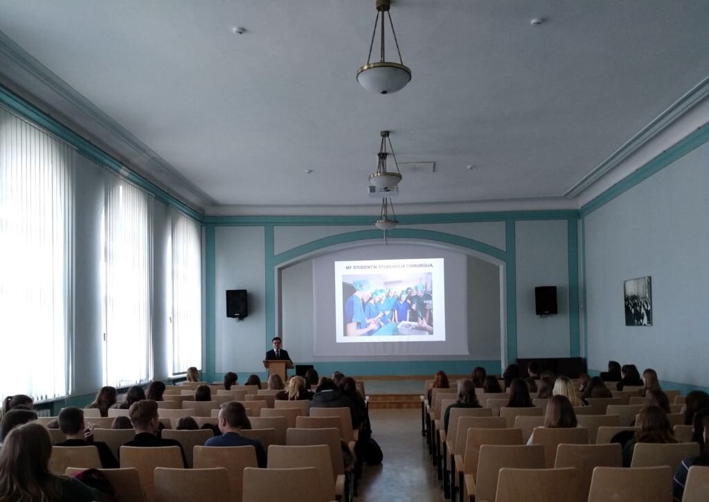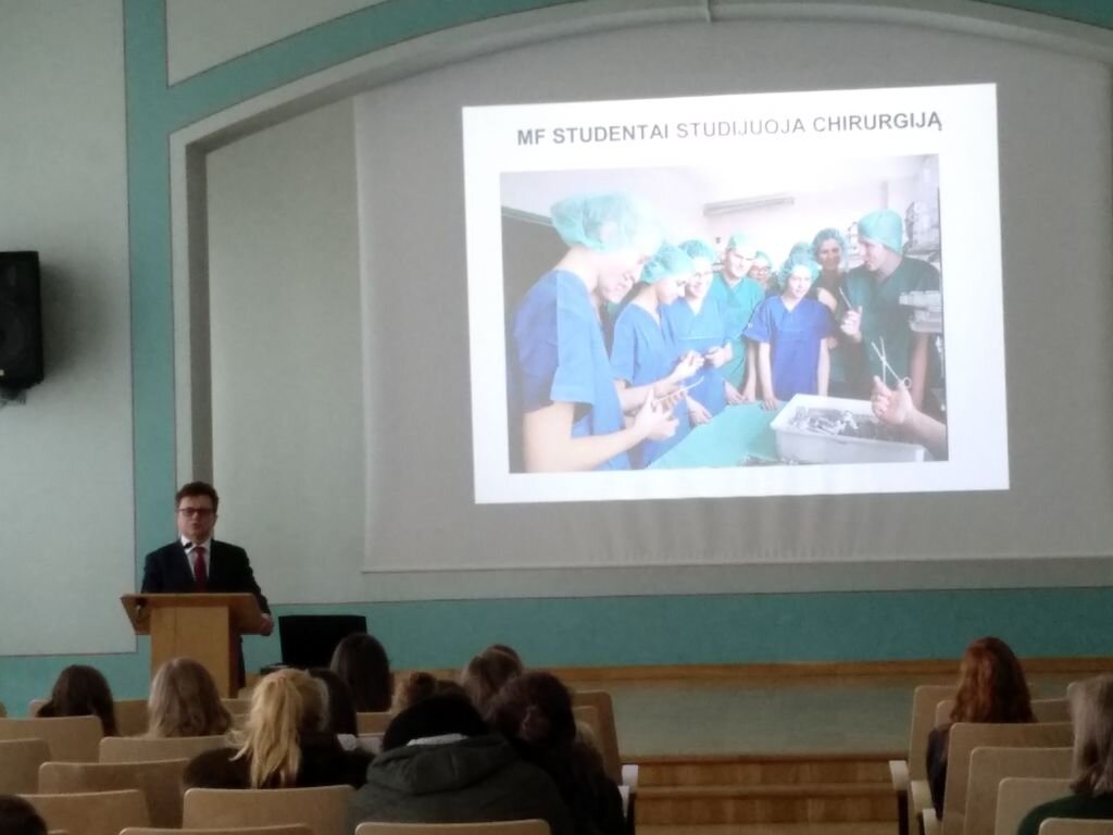 Kovo 5 dieną gimnazijoje prasidėjo tradicinė Studijų savaitė, truksianti keturias dienas. Numatyta, kad septynių Lietuvos universitetų ir Kauno kolegijos atstovai pristatys apie du šimtus studijų programų. Šiųmetės „Studijų savaitės“ renginiuose pirmą kartą dalyvauja Vilniaus universitetas ir Kauno kolegija. Pirmadienį – Gyvybės, sveikatos, sporto, veterinarijos, žemės ūkio mokslų studijų krypčių dieną – gausus būrys būsimųjų studentų (488 mokiniai) susipažino su Lietuvos sveikatos mokslų, Aleksandro Stulginskio, Vytauto Didžiojo, Lietuvos sporto ir Vilniaus universitetų bei Kauno kolegijos siūlomomis studijų galimybėmis. Mokiniai domėjosi Aleksandro Stulginskio universiteto Agronomijos fakulteto agronomijos, maisto žaliavų kokybės ir saugos, želdininkystės ir kitomis studijų programomis. Jas įtaigiai pristatė universiteto aukštesniųjų kursų studentės ir „Agrokoncerno“ administracijos atstovai. Apsilankiusius šio universiteto Vandens ūkio ir žemėtvarkos, Žemės ūkio ir inžinerijos bei Miškų ir ekologijos fakulteto studijų programų pristatymuose domino ne tik programų turinys, bet ir įsidarbinimo, karjeros perspektyvos. Labai įdomius ir įtaigius studijų programų pristatymus parengė ir daugiausia klausytojų sulaukė Vilniaus universiteto Medicinos fakulteto studijų prodekanas prof. dr. Rimantas Stukas ir Gyvybės mokslų centro atstovai – dėstytojai bei studentai. Jie pristatė biologijos, molekulinės biologijos, genetikos, neurobiofizikos, ergoterapijos, medicinos, odontologijos ir kitas studijų programas. Daug gerų atsiliepimų buvo pasakyta ir apie Kauno kolegijos Medicinos fakulteto studentų parengtus kosmetologijos bei burnos priežiūros studijų programų pristatymus. Būsimosios kosmetologės ne tik supažindino su studijų perspektyvomis, bet ir specialiu prietaisu nustatė dalyvių veido odos tipus. Po pirmosios dienos pristatymų pakalbinti mokiniai gražiais žodžiais minėjo visus lektorius bei gyrė jų pasirengimą, džiaugėsi daug sužinoję apie gyvybės, sveikatos, veterinarijos, žemės ūkio mokslus ir karjeros galimybes. Labai smagu, kad pristatyti studijų programų į gimnaziją atvyko ir trys buvę mokiniai. Tai Aleksandro Stulginskio universiteto Agronomijos fakulteto Maisto žaliavų kokybės ir saugos specialybės IV kurso studentė Samanta Kaupaitė, to paties universiteto „Agrokoncerno“ personalo direktorė Rasa Sakauskienė, baigusi gimnaziją prieš 15 metų, ir Lietuvos sveikatos mokslų universiteto pirmakursė Kamilė Demendžiūnaitė.