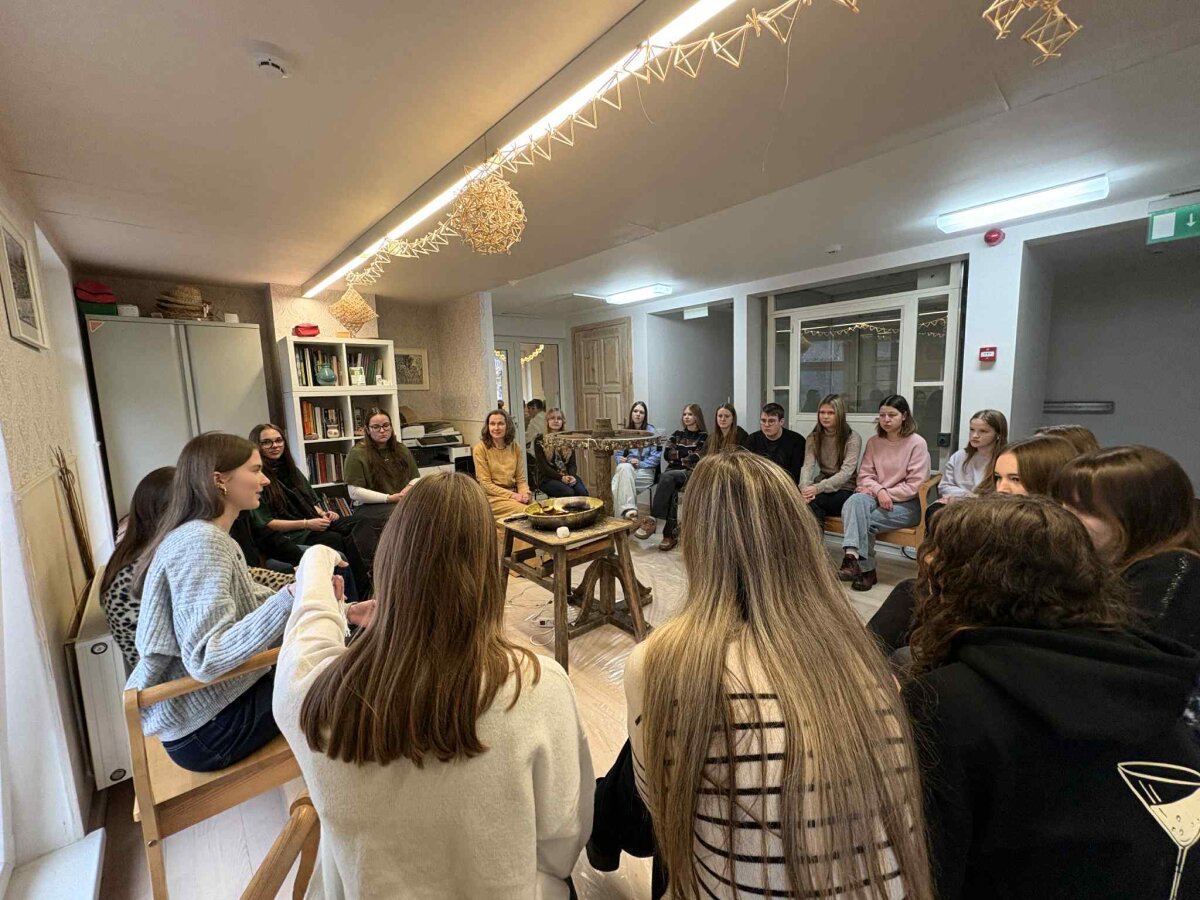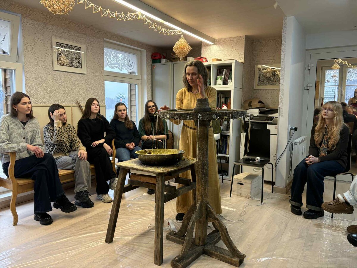 Jau tradicija tapo metų pabaigoje aktyviausiems Mokinių tarybos ir Maironiečių draugijos nariams suorganizuoti edukacinę išvyką. Šiemet, lydimi mokytojų Juditos Sakalienės, Ivetos Zalieckaitės ir Mato Kandroto, jie apsilankė Vilniuje, pasivaikščiojo po šventinį Vilniaus Kalėdinį miestelį, senamiestį. Vėliau kelionę pratęsė Trakų krašto amatų centre, dalyvavo edukacijose: liejo vaško žvakes, gamino raižinius. Visi ne tik smagiai praleido laiką, bet ir nemažai sužinojo apie bitininkystę ir raižinių gamybą. Dėkojame administracijai už dėmesį gimnazistų iniciatyvoms ir puikią kalėdinę dovaną.