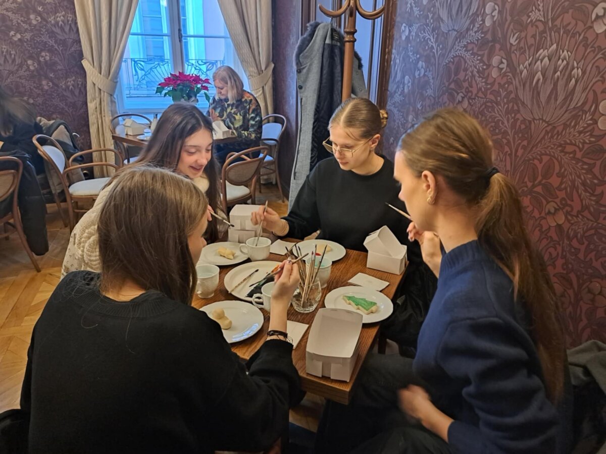 Artėjant Šv. Kalėdoms, gruodžio 19–20 dienomis, I–IV klasių gimnazistai vyko į pažintinę kelionę į Rygą bei Taliną. Ypač gausiai kelionėje dalyvavo Ic ir Ie klasės. Pirmiausia mokiniai viešėjo Latvijos sostinėje Rygoje. Šventėms pasipuošusiame mieste mokiniai aplankė senamiesčio kultūrinius objektus, Kalėdų mugę, Rygos automobilių muziejų. Po pietų kelionė tęsėsi – mūsų laukė Estijos sostinė Talinas. Pirmoji pažintis su šiuo miestu buvo įspūdinga – labai sužavėjo senoviniu stiliumi įrengtas St. Olavo viešbutis, kuriame apsigyvenome. Antroji kelionės diena buvo paskirta pažinčiai su Talinu. Daugelį mokinių Estijos sostinė sužavėjo istoriniais, kultūriniais paminklais, ypatinga miesto dvasia, kurią gyvai ir išradingai perteikė Taline gyvenantis gidas Romanas. Po ekskursijos senamiestyje, pasidaliję į dvi grupes, mokiniai dalyvavo marcipanų puošybos edukacijoje ir pačių papuoštus gaminius parsivežė namo. Vėliau kelionės dalyviai šventinę nuotaiką kūrėsi kalėdinėje mugėje. Viešnagę Taline vainikavo ekskursija Laivybos muziejuje. Mokiniai turėjo galimybę užeiti į ledlaužio ir povandeninio laivo vidų, virtualiose ekspozicijose pamatyti tarpukario Estijos laivyno struktūrą, mūšius Baltijos jūroje, daug sužinojo apie jūreivių gyvenimą. Vėlyvą naktį sugrįžome į Kauną kupini nepamirštamų įspūdžių, labiau pažinę baltiškąją kultūrą ir vieni kitus, palyginę, kaip Kalėdoms pasipuošusios mūsų kaimyninių šalių sostinės, ir dar kartą supratę, kad pati gražiausia šalis mums yra Lietuva.