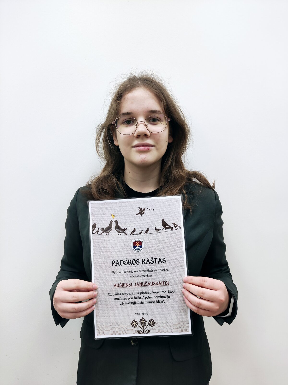 Šiame konkurse dalyvavo ir Aušrinės Janušauskaitės (IIe klasė) darbas, kuris buvo įvertintas nominacija už išradingą meninę idėją.