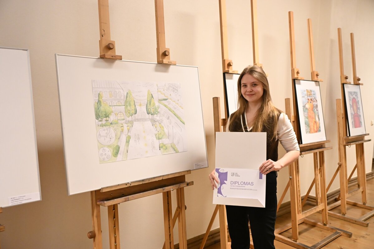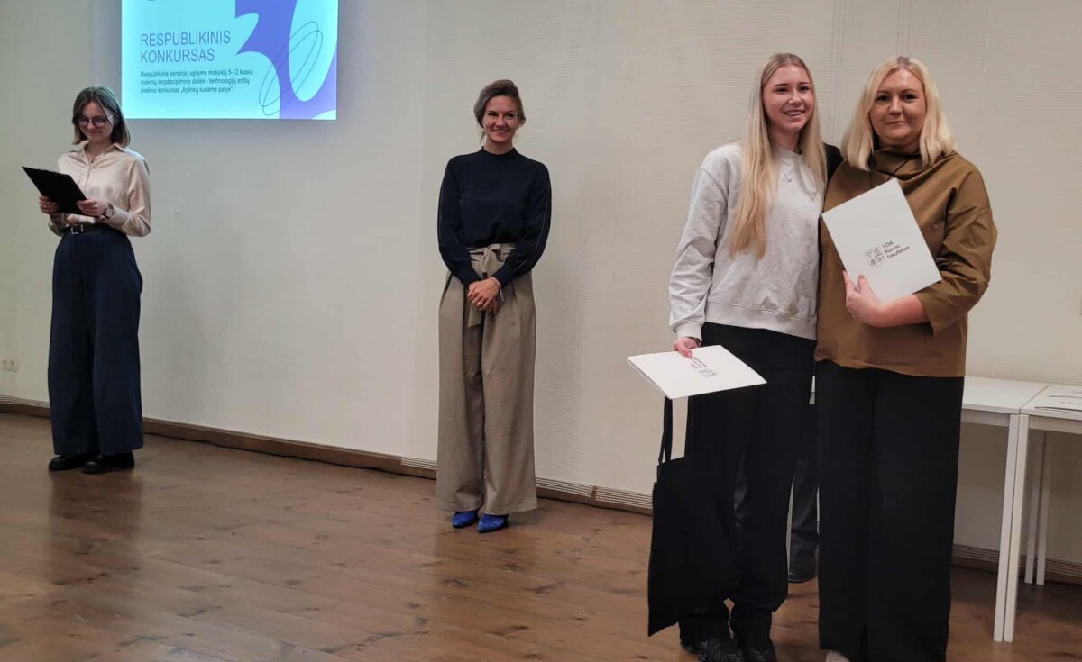 Vilniaus dailės akademijos Kauno fakultete vyko respublikinis 5–12 klasių mokinių piešinių konkursas „Aplinką kuriame patys“, į kurį buvo pakviesti talentingi mokiniai iš įvairių Lietuvos mokyklų. Gimnazijai atstovavo Izabelė Kasperavičiūtė (IIa) ir Gerda Ardzijauskaitė (IVa). Kol konkurso dalyviai tris valandas kūrė darbus duotomis temomis, jų mokytojams buvo surengtos kūrybinės dirbtuvės. Izabelės darbo tema – „Mano spalvotas kambarys“ (9–10 klasių grupė), Gerdos – „Gatvė, kurioje noriu gyventi“ (11–12 klasių grupė). Paskutinę spalio mėnesio dieną vykusioje laureatų šventėje savo pasirodymu džiugino iliuzionistas Justinas Malinauskas, buvo pagerbti laureatai. Džiaugiamės, kad mūsų gimnazisčių kūryba buvo įvertinta – Izabelei Kasperavičiūtei (IIa) įteiktas II vietos diplomas, o Gerda Ardzijauskaitė (IVa) pelnė Architektūros katedros nominaciją. Sveikiname gimnazistes ir jų dailės mokytoją Jūratę Petrauskienę!