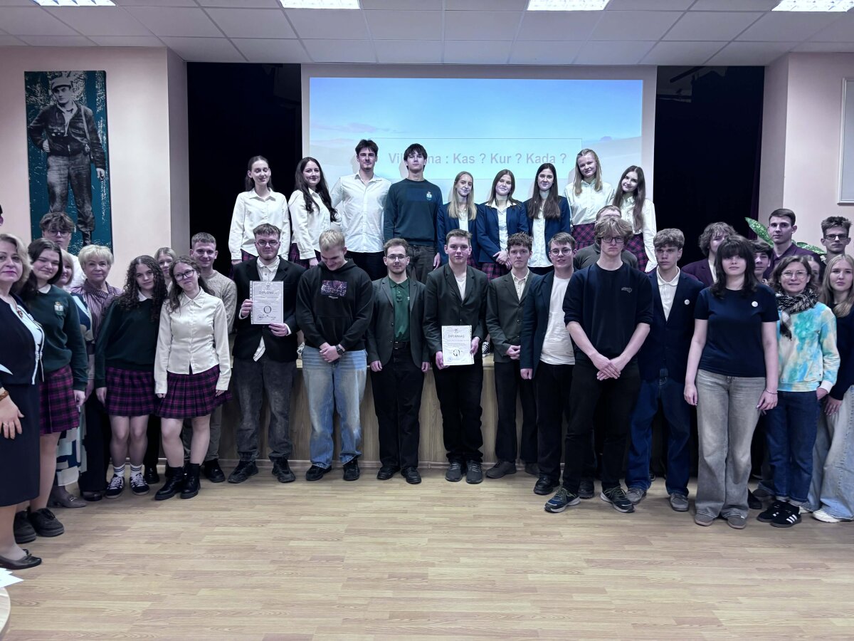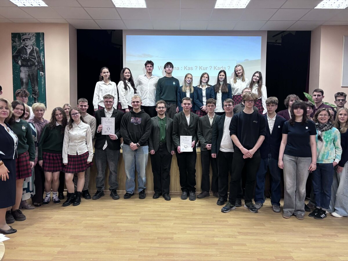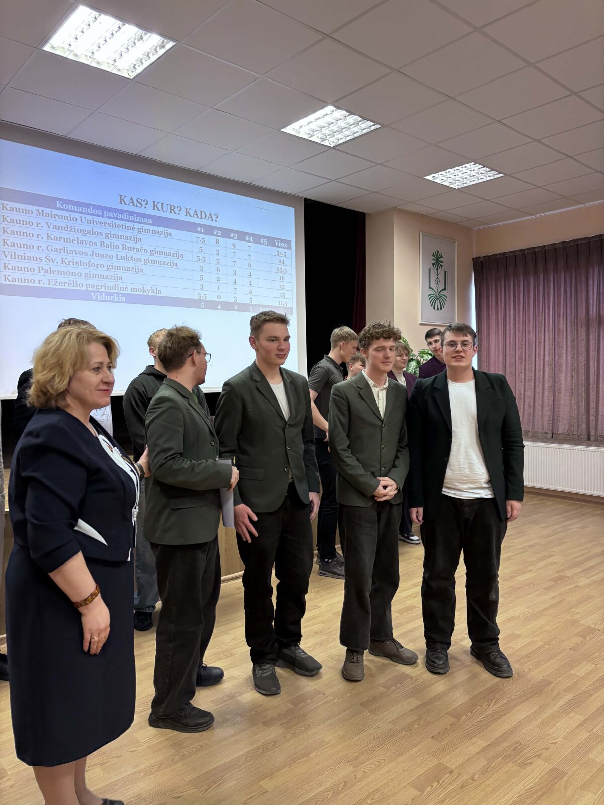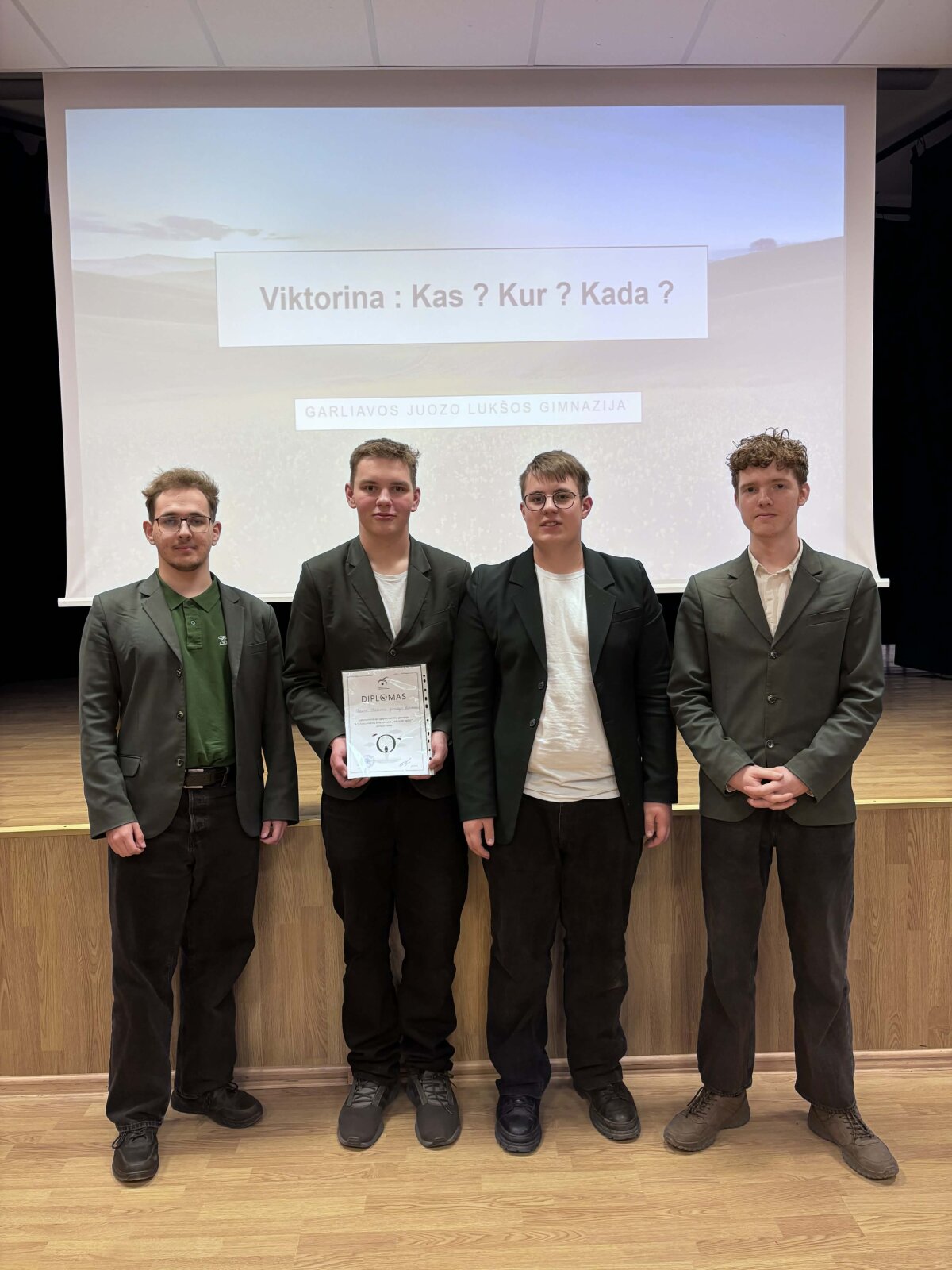 Sveikiname gimnazistus – Augustą Maciulevičių (IIIc), Justą Kvedarą (IIIf), Martyną Kondrotą (IVb) ir Pijų Gaurylių (IVc) – I vietos nugalėtojus! Komandą parengė mokytoja Jurgita Šilingienė. Kovo 19 d. Kauno rajono Garliavos Juozo Lukšos gimnazijoje vyko kasmetinis Lietuvos 9–12 klasių mokinių žinių konkursas „Kas? Kur? Kada?“. Konkursas vyko penkiais turais: Lietuvos geografija, istorija, kultūra, papročiai ir tradicijos. Viename ture buvo pateikta 10 klausimų, atsakymui skiriama 1 minutė. Už teisingą atsakymą buvo skiriamas vienas taškas. Po kiekvieno turo buvo skaičiuojami taškai ir skelbiami tarpiniai rezultatai. Konkurse dalyvavo 11 komandų iš Kauno miesto, Kauno, Širvintų, Vilkaviškio rajonų ir Rietavo. Daugiausia taškų (35 taškai) surinko ir I vietą laimėjo Kauno Maironio universitetinės gimnazijos komanda „Maironiukai“. II vietą (34 taškai) laimėjo Vilkaviškio „Aušros“ gimnazijos komanda „Aušriečiai“. III vieta (33 taškai) atiteko Kauno rajono Garliavos Juozo Lukšos gimnazijai. Renginio organizatoriai įsitikinę, kad šis konkursas ne tik puoselėja žinių troškimą, bet yra puikus būdas parodyti, kad geografija yra gyva ir svarbi disciplina, skatinanti mokinių kūrybiškumą, strateginį mąstymą, gebėjimą dirbti komandoje, tvarų požiūrį į aplinką bei jos išteklius. Renginys padėjo ne tik patikrinti mokinių geografijos žinias, bet ir įkvėpė domėtis savo šalimi, skatino mokymosi motyvaciją ir bendradarbiavimą.