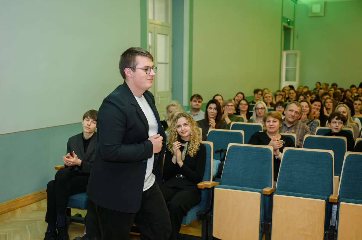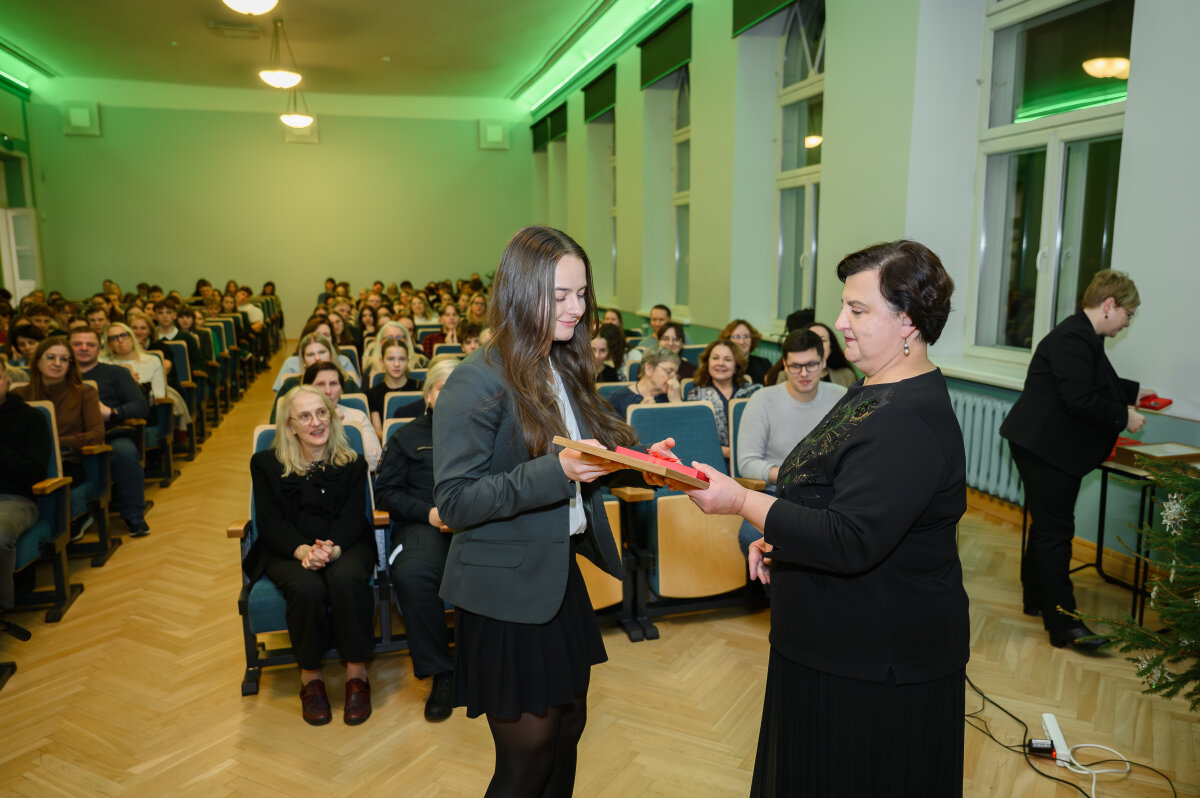 Gruodžio 11 d. į Steigiamojo Seimo salėje vykusį renginį „Apimti pasaulį, priglaust prie širdies...“ susirinkome tam, kad padėkotume tiems, kurie visus metus garsino gimnazijos vardą, kūrė darnią, jaukią ir bendruomenišką aplinką. Tiems, kurių iniciatyvos vienijo mokinius, tėvus, mokytojus, skatino bendradarbiauti, drauge kurti gimnazijos istoriją. Jaukus ir šiltas renginys dar kartą patvirtino, kad tik būdami drauge, palaikydami vieni kitus ir dalindamiesi idėjomis, tampame viena stipri, gyva ir auganti bendruomenė, kurioje kiekvienas yra svarbus ir reikalingas.