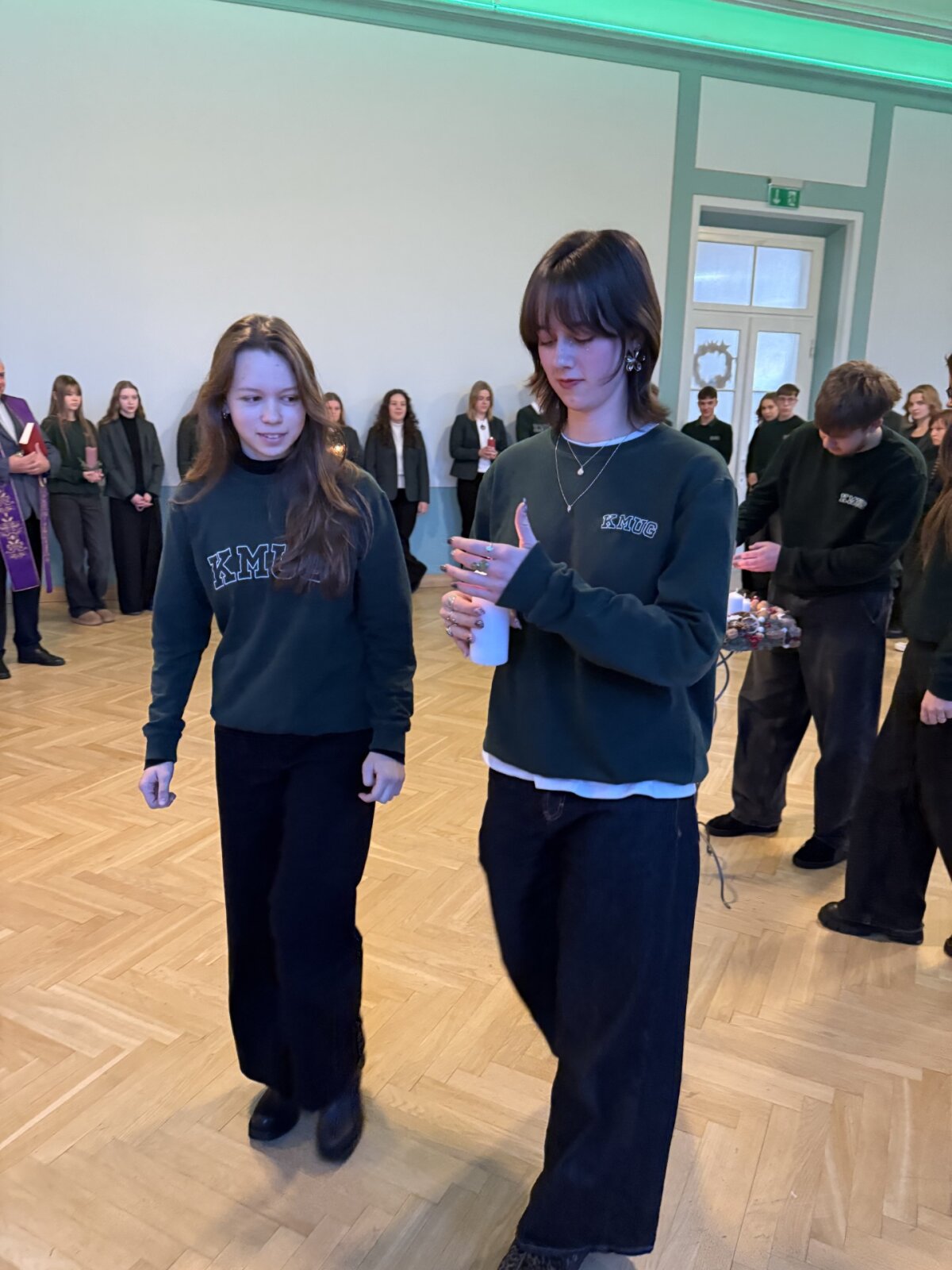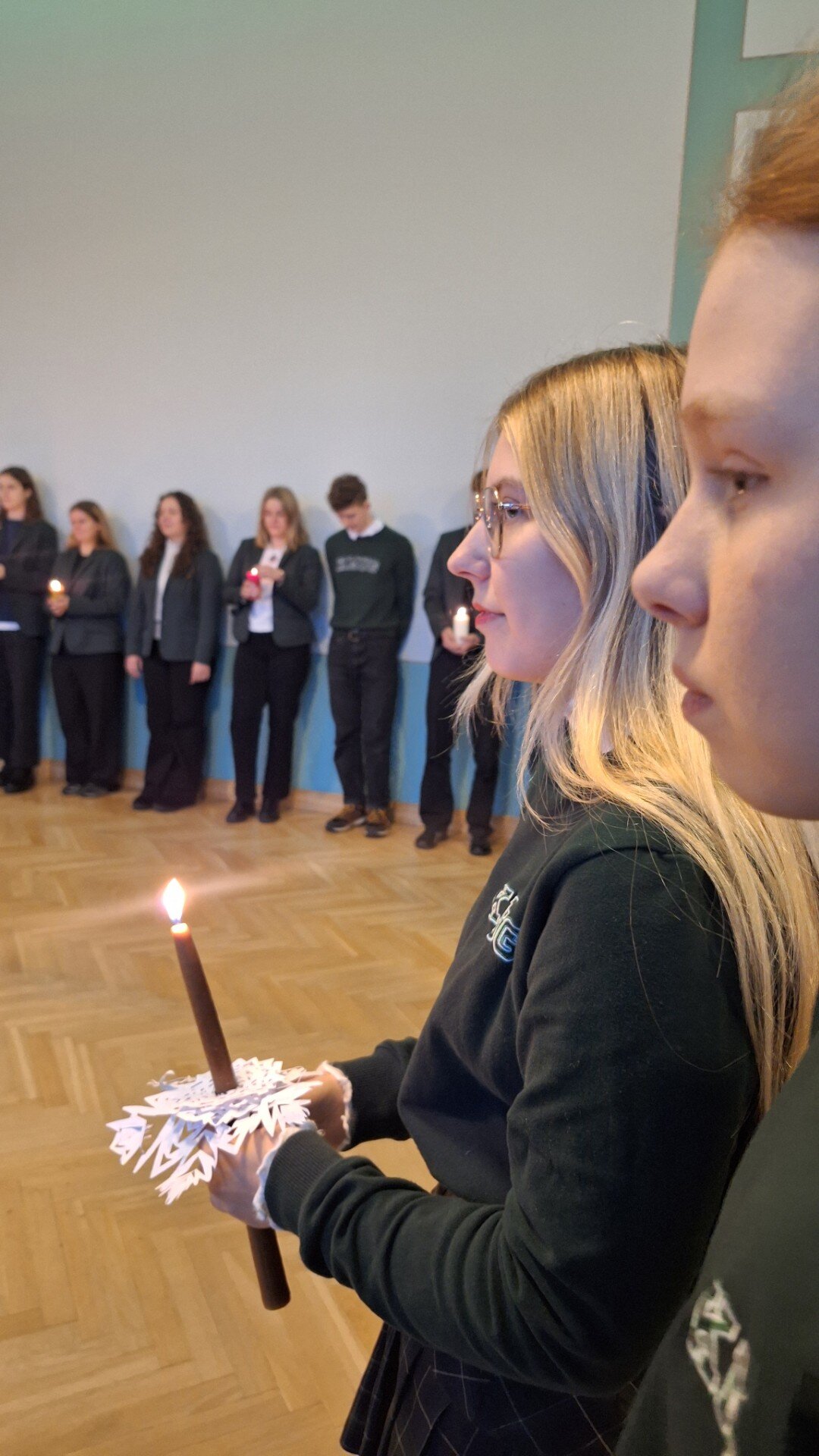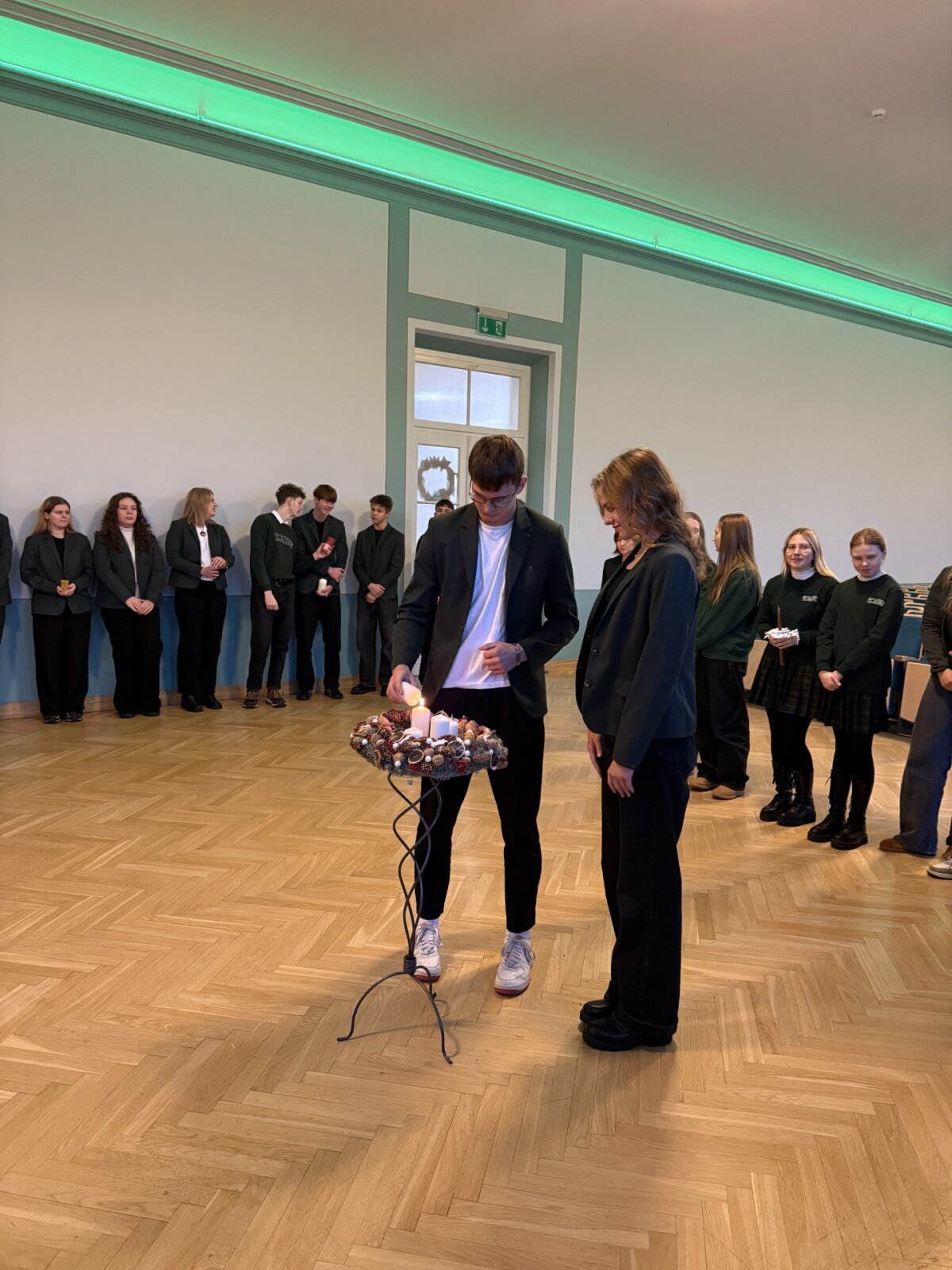 Gruodžio 1 d. rytą mokiniai kartu su gimnazijos kapelionu, kunigu Evaldu Vitulskiu, tikybos mokytoja Sandra Martinkiene ir administracijos atstovais susirinko simboliškai pradėti Advento laikotarpį – iškilmingai uždegė pirmąją Advento vainiko žvakę. Susitikimo metu mokytoja priminė, kuo ypatinga kiekviena vainiko žvakė, kokią prasmę ir viltį jos neša į tikinčiųjų širdis, skatindama susimąstyti apie laukimo, tylos ir pasiruošimo svarbą.