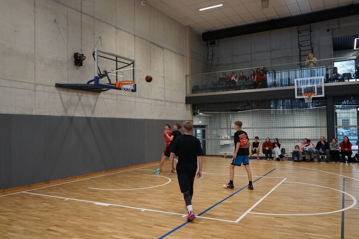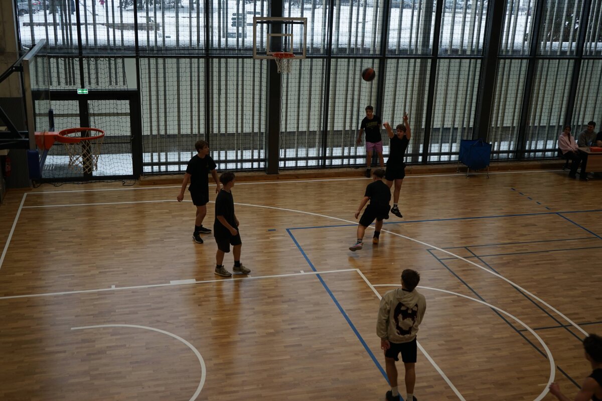 Baigiantis pamokoms prasidėjo azartiškas ir daug emocijų sukėlęs gimnazistų 3x3 krepšinio turnyras, skirtas paminėti artėjančią Lietuvos valstybės atkūrimo dieną – Vasario 16-ąją. Turnyrą dar labiau pagyvino palaikymo komandų šokėjos, kurios savo energingais pasirodymais įkvėpė žaidėjus ir džiugino žiūrovus. Salėje netrūko plojimų, šūksnių ir tikros sportinės atmosferos.