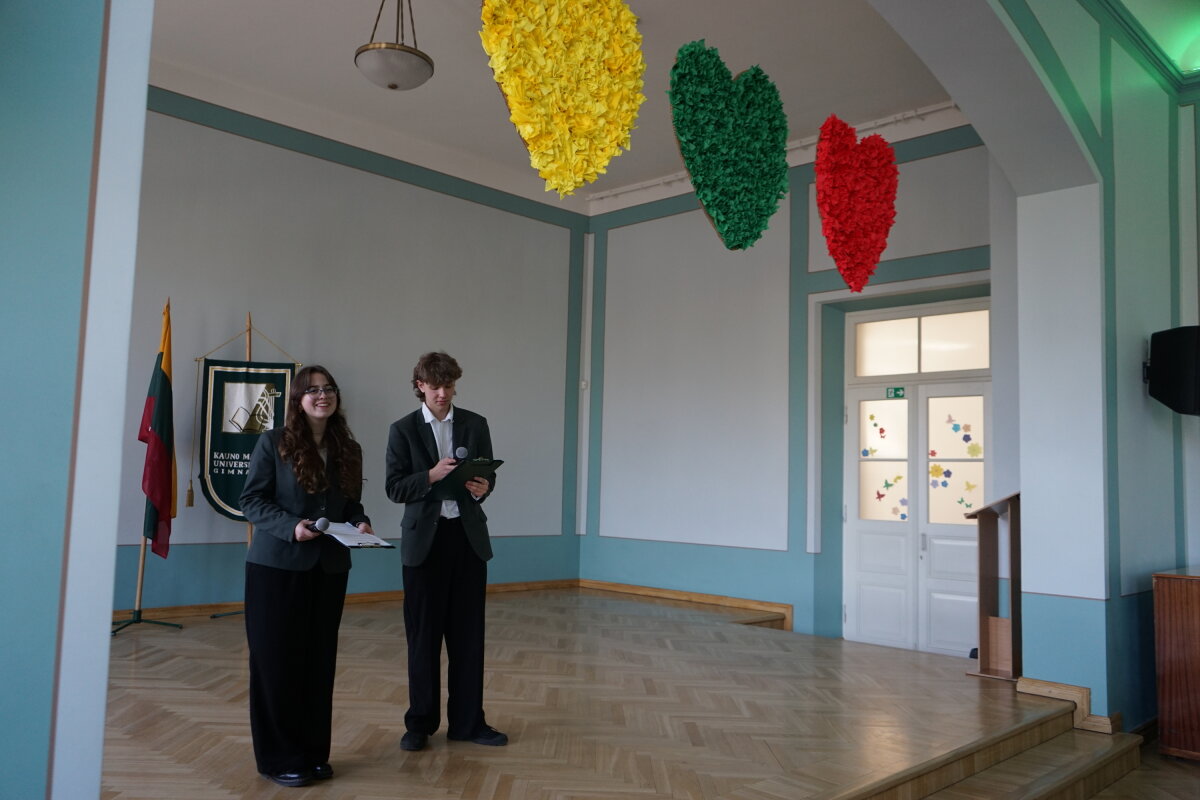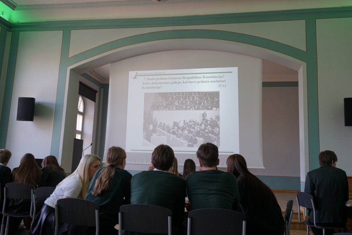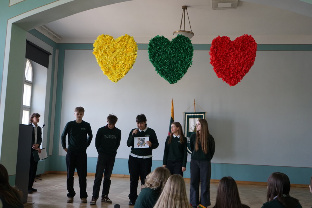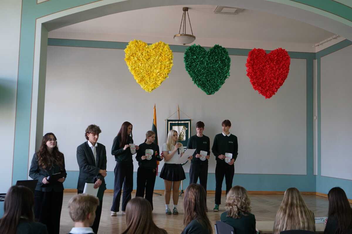 Kovo 9 d. gimnazijos bendruomenė pradėjo renginių ciklą, skirtą Lietuvos Nepriklausomybės atkūrimo dienai – Kovo 11-ajai – paminėti. I klasių gimnazistai rinkosi Steigiamojo Seimo salėje, kur dalyvavo viktorinoje „1990: istorija gyvai – pasirinkimas būti laisviems“. Joje mokiniai pasitikrino žinias apie Lietuvos kelią į laisvę, svarbiausius istorinius įvykius ir asmenybes.