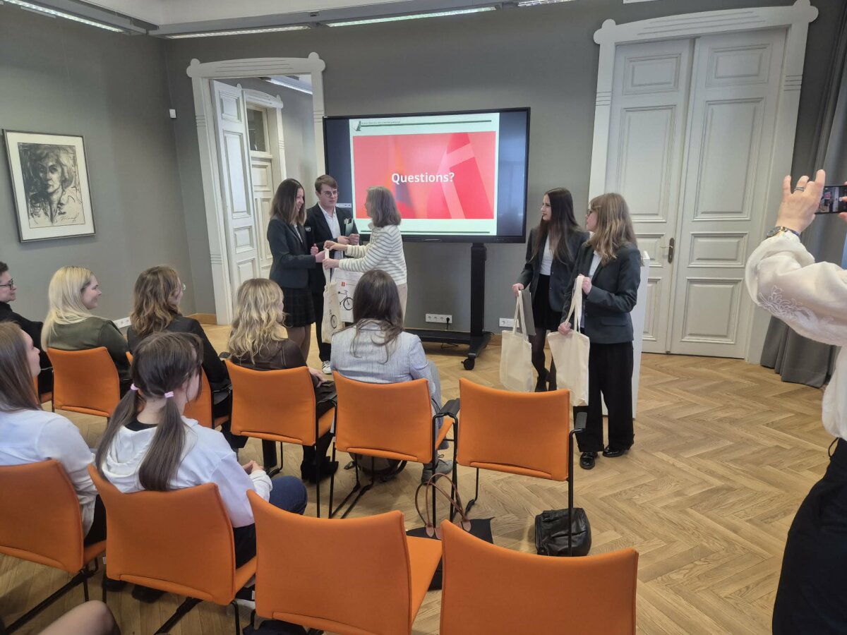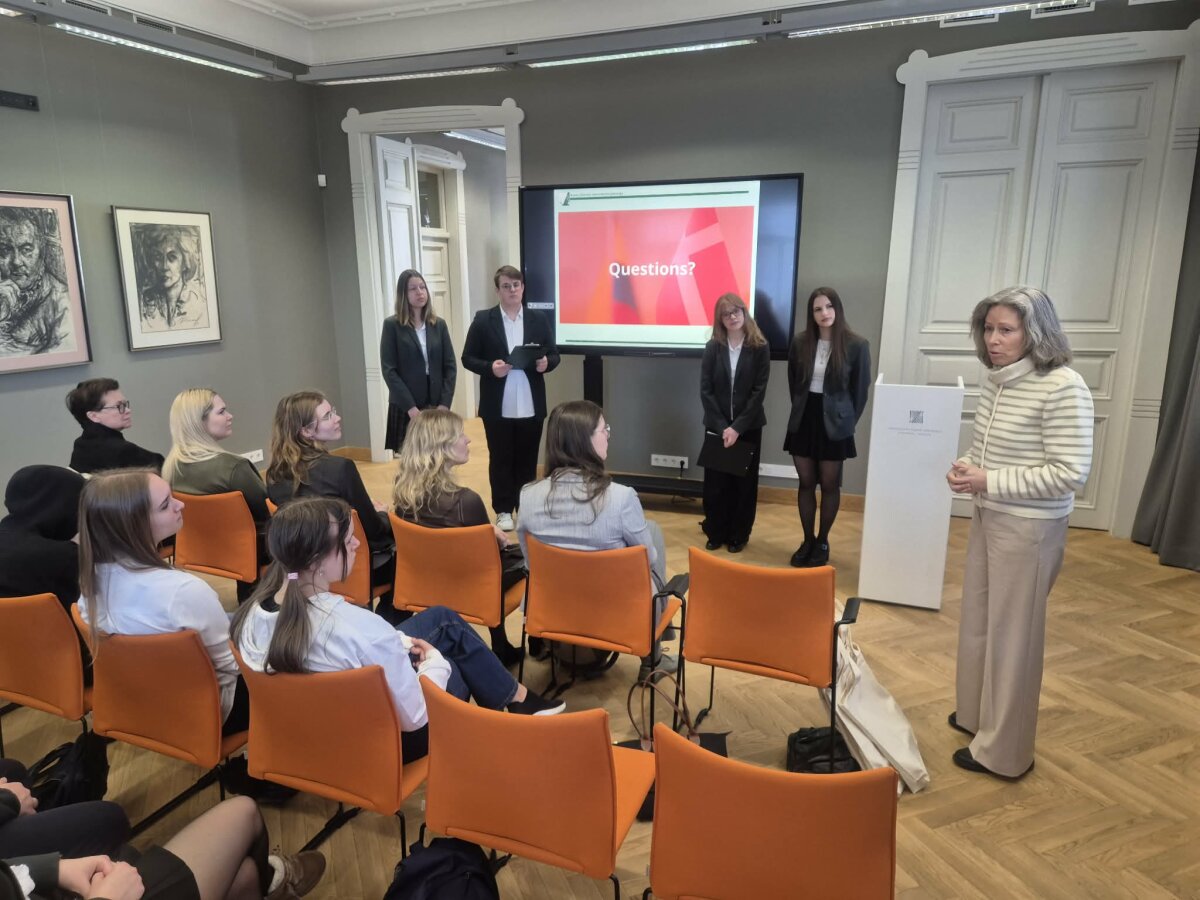 Džiaugiamės, kad parodos atidaryme mūsų IIIc klasės gimnazistai – Lėja Makūnaitė, Elija Stackevičiūtė, Augustas Maciulevičius ir Danielė Dulkytė – pristatė pranešimą „Kaip jaunoji karta mato Daniją šiuolaikiniame kontekste?” Gimnazistų įžvalgos parodė, kad jaunoji karta Daniją suvokia ne tik kaip politinę partnerę, bet ir kaip modernios, socialiai atsakingos valstybės pavyzdį. Mokiniai akcentavo švietimo sistemos pažangą, inovacijų svarbą bei aukštą gyvenimo kokybę, kurią susiejo su stipriomis demokratinėmis vertybėmis. Taip pat jie pabrėžė kultūrinių mainų reikšmę, leidžiančią jaunimui geriau suprasti skirtingas šalis ir stiprinti tarptautinius ryšius.