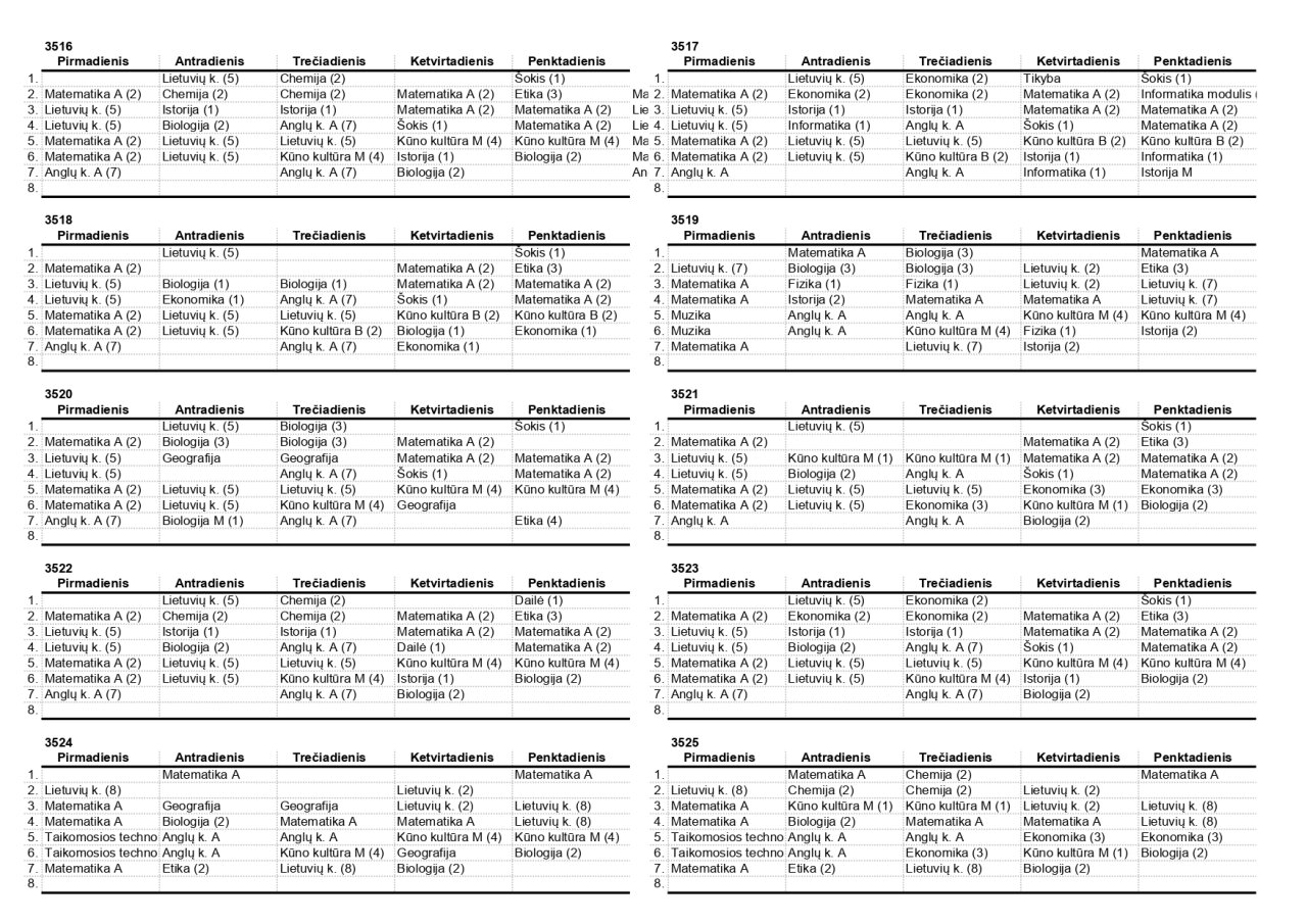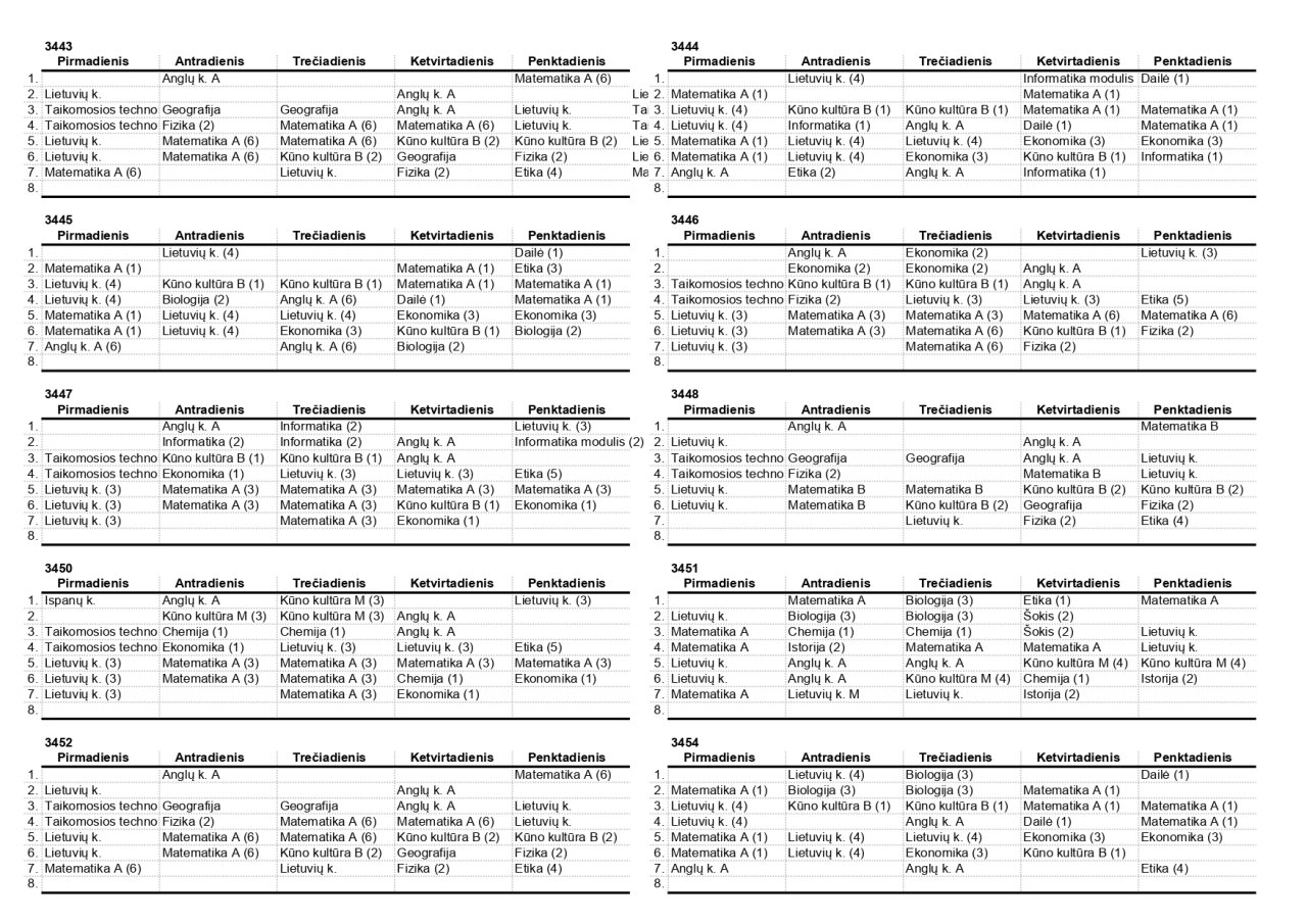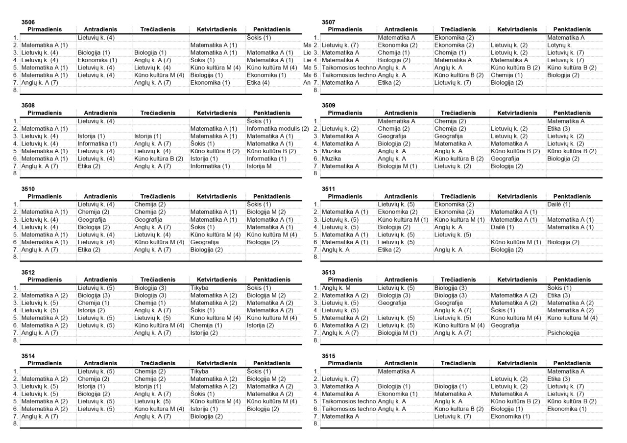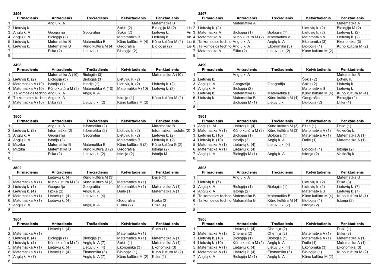 2025–2026 m. m. IV klasių mokinių pamokų tvarkaraščiai II pusmetis