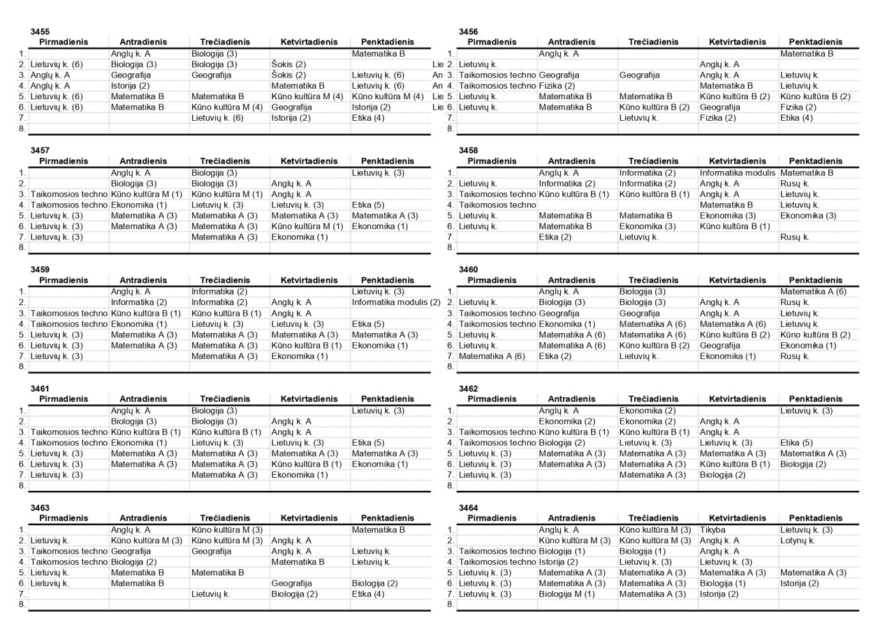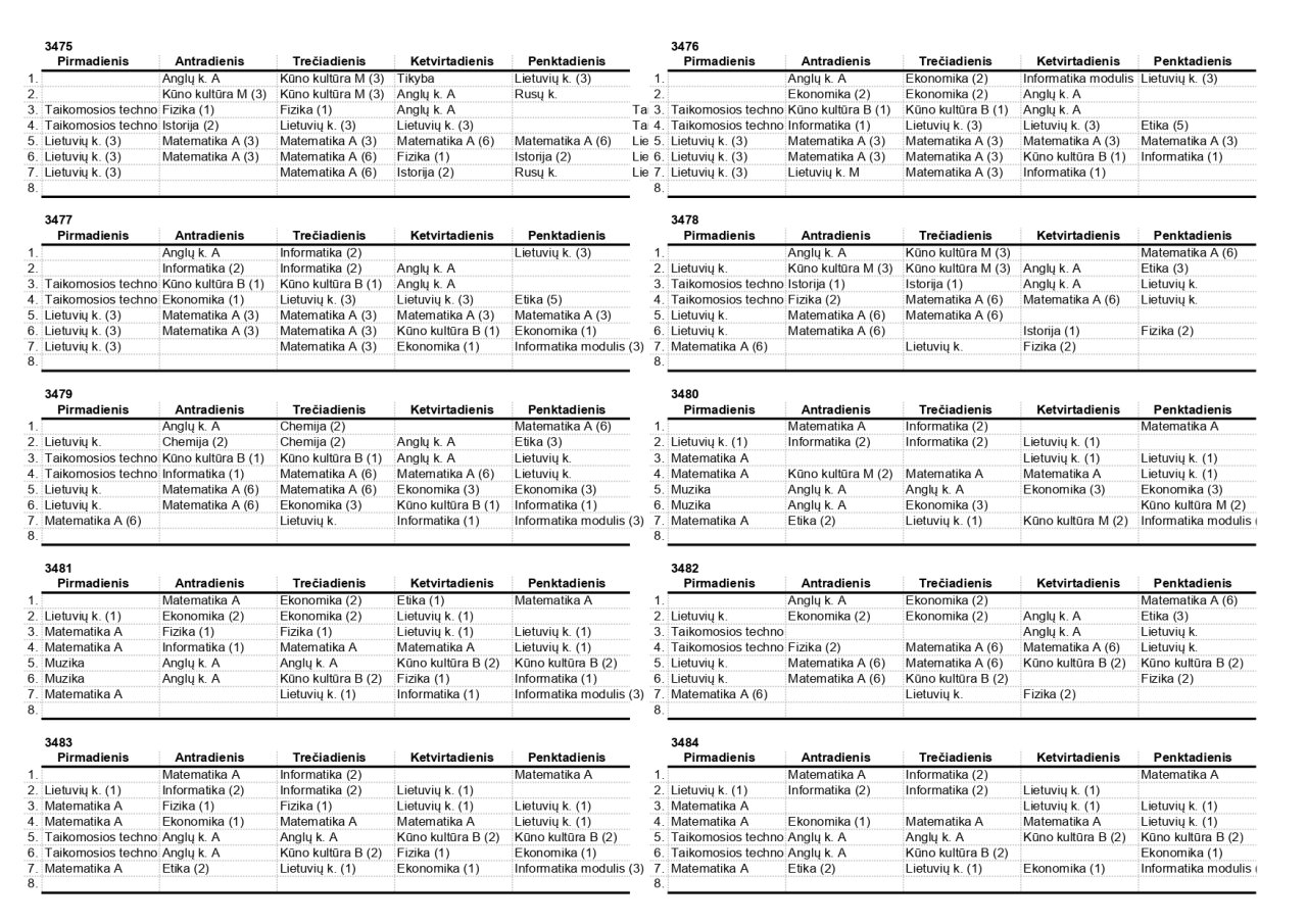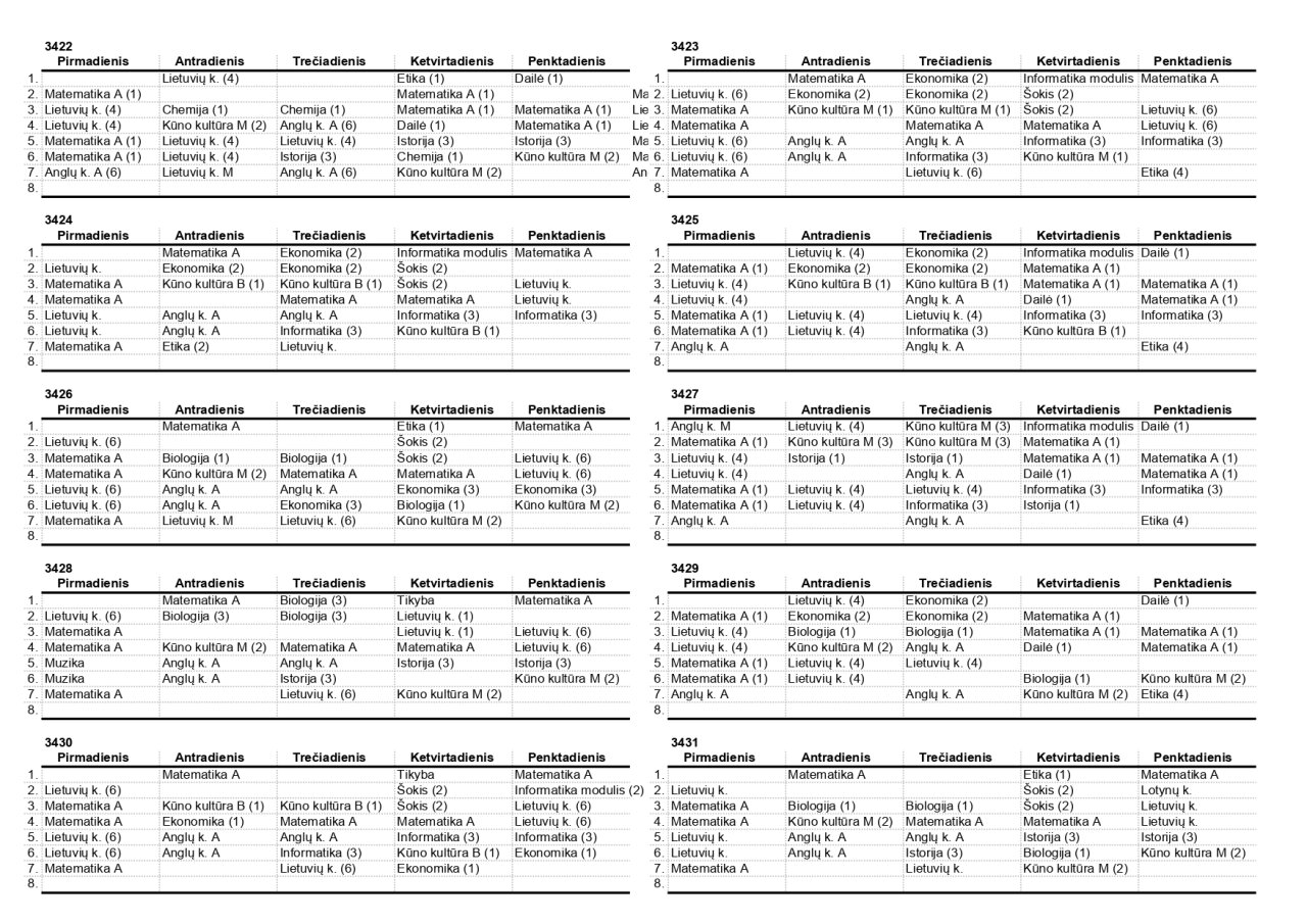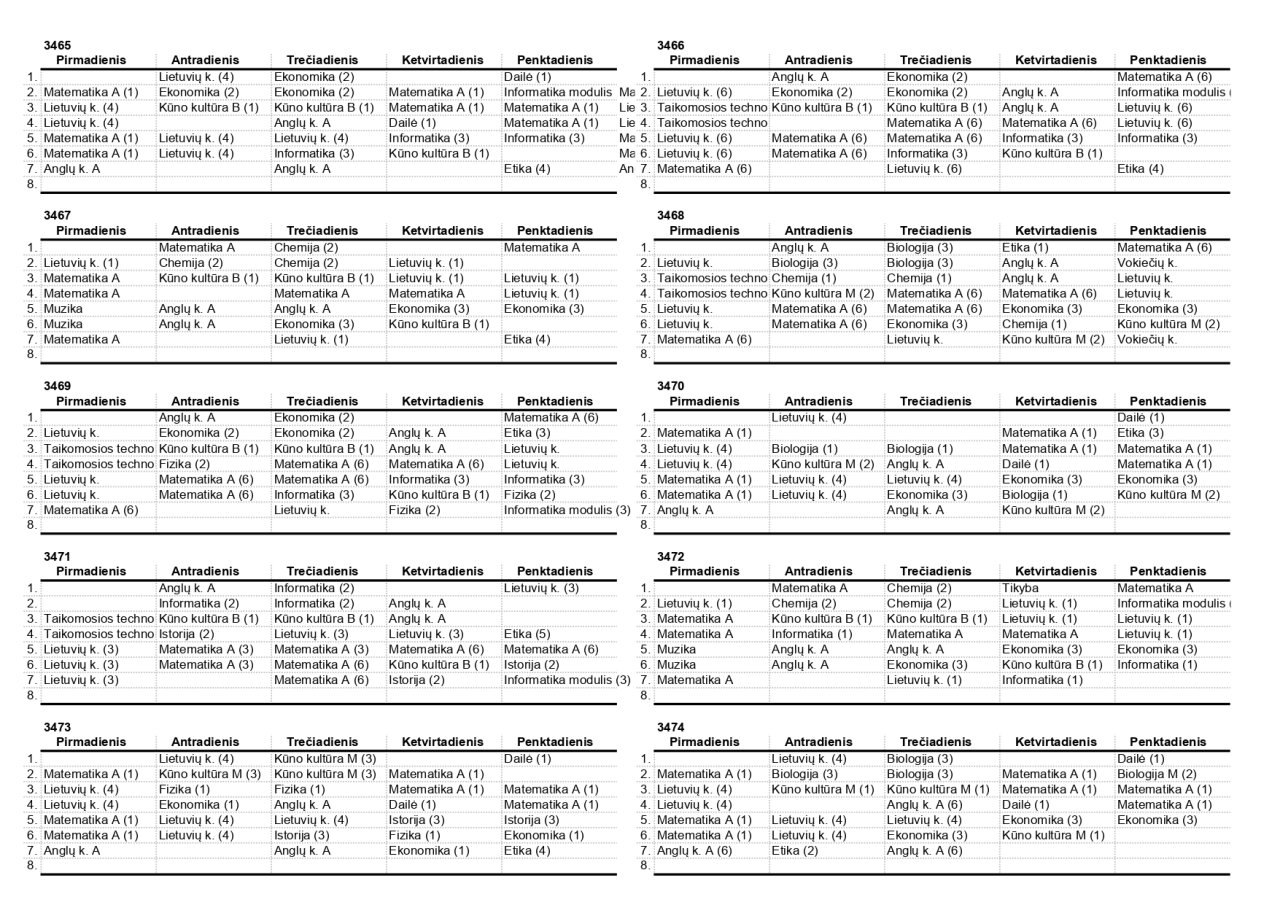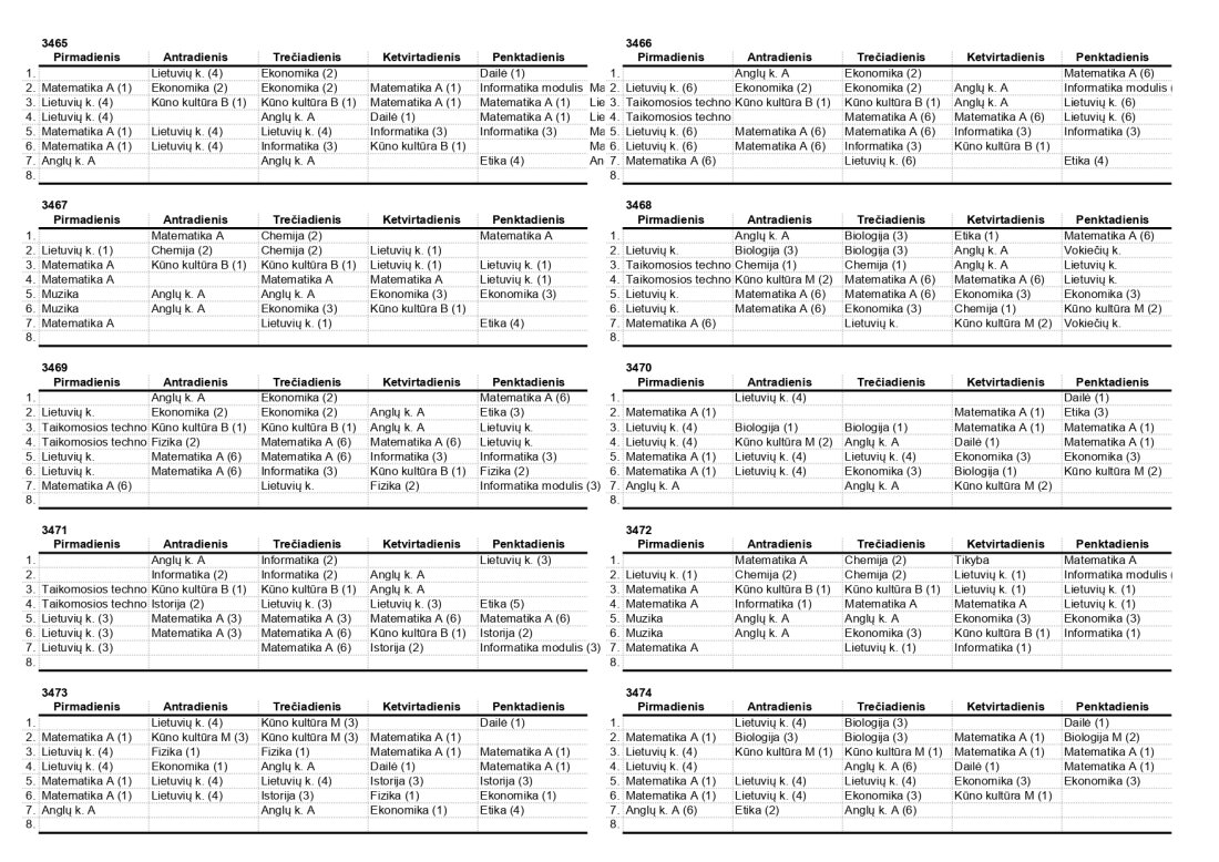 2025–2026 m. m. IV klasių mokinių pamokų tvarkaraščiai II pusmetis