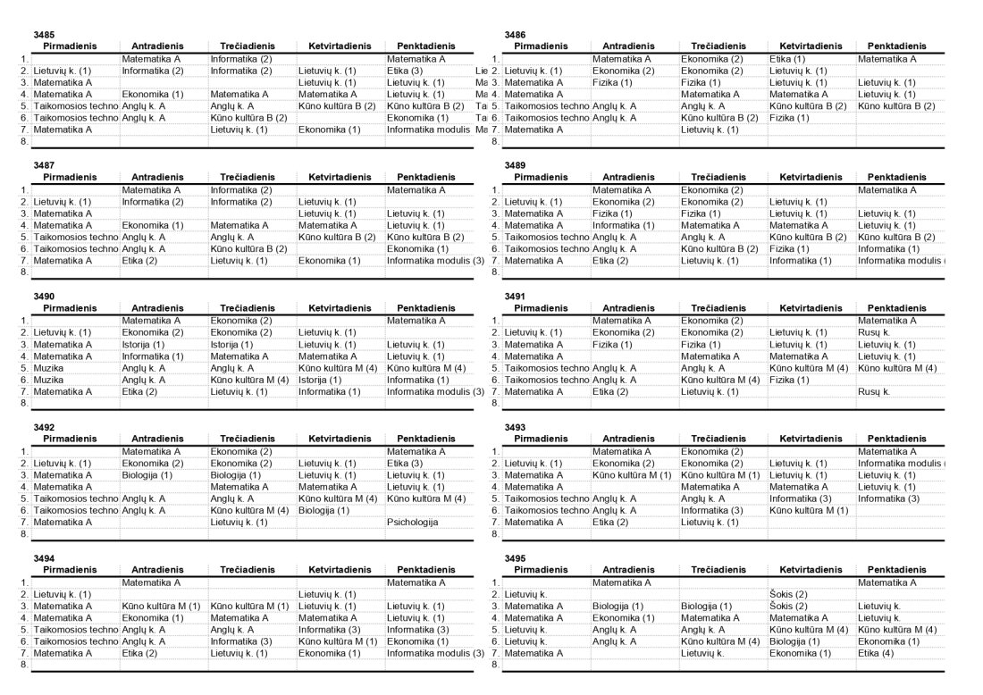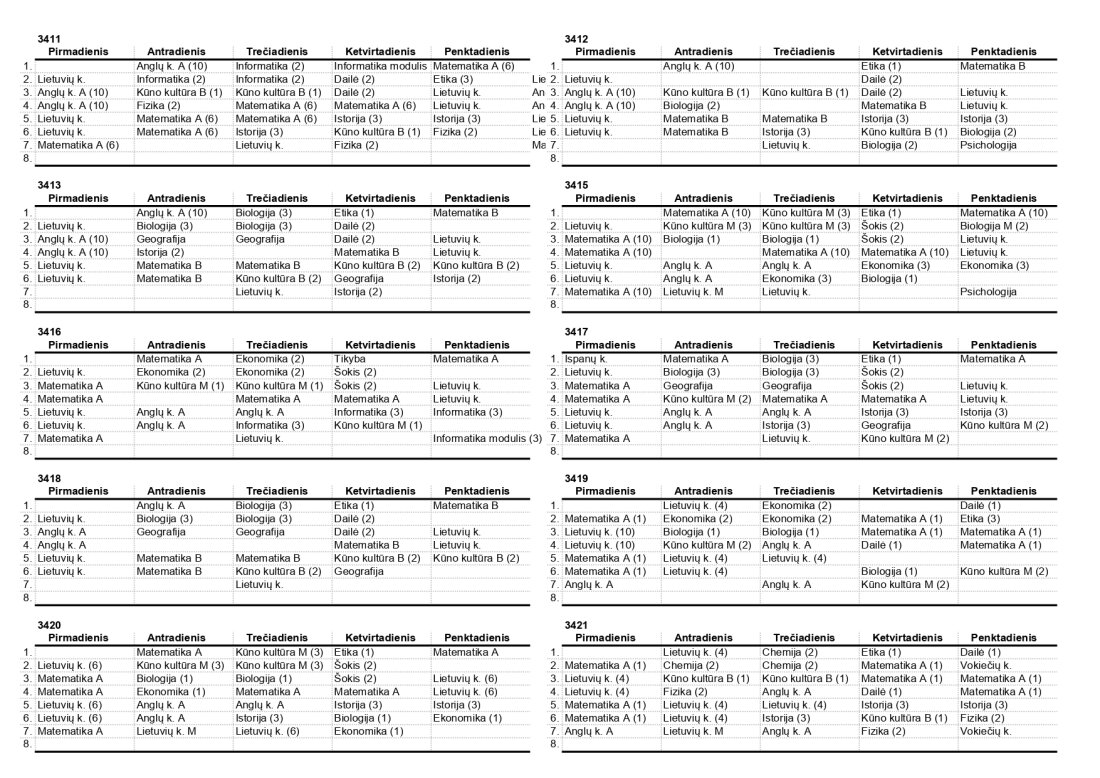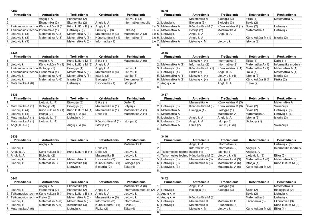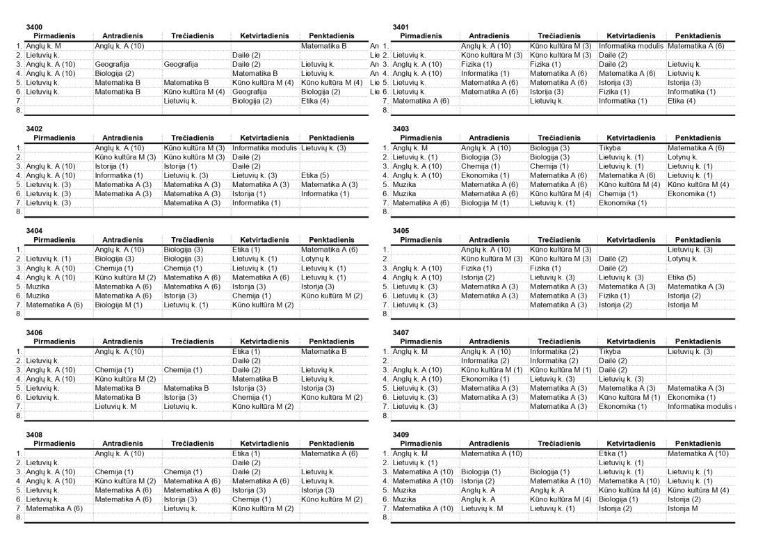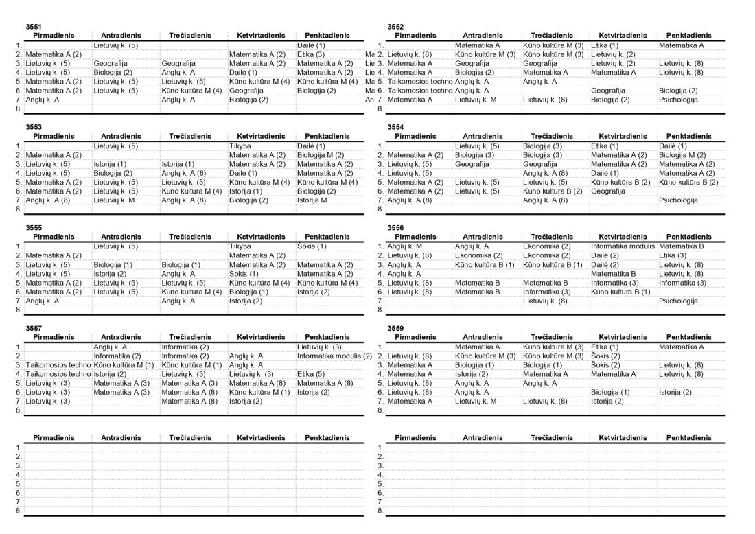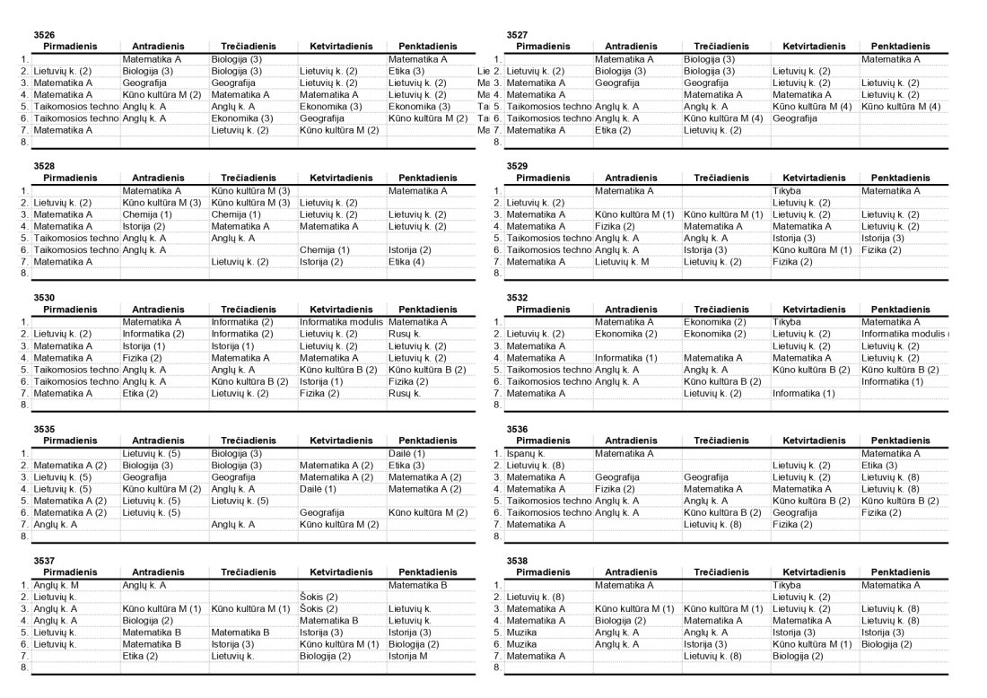2025–2026 m. m. IV klasių mokinių pamokų tvarkaraščiai II pusmetis