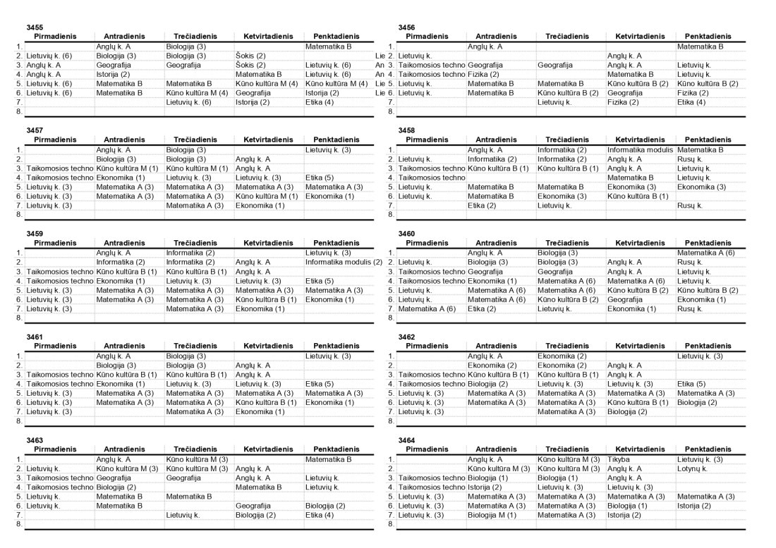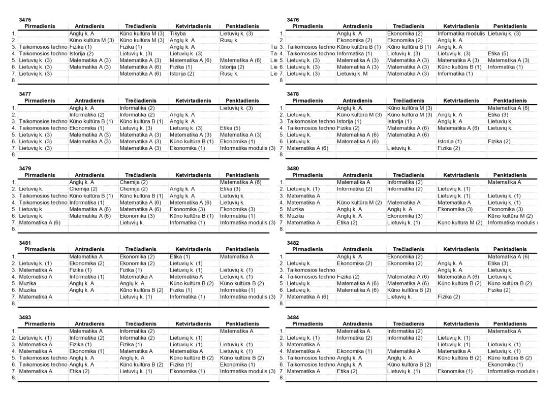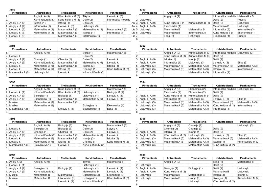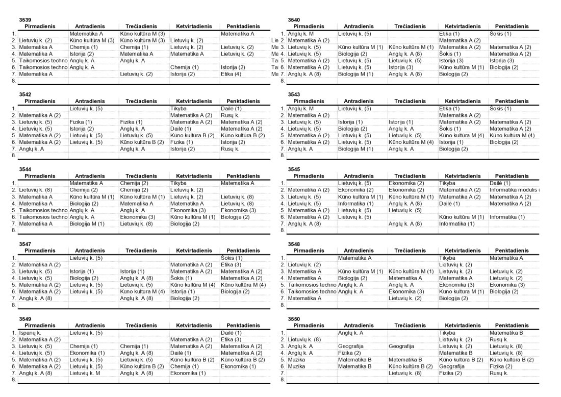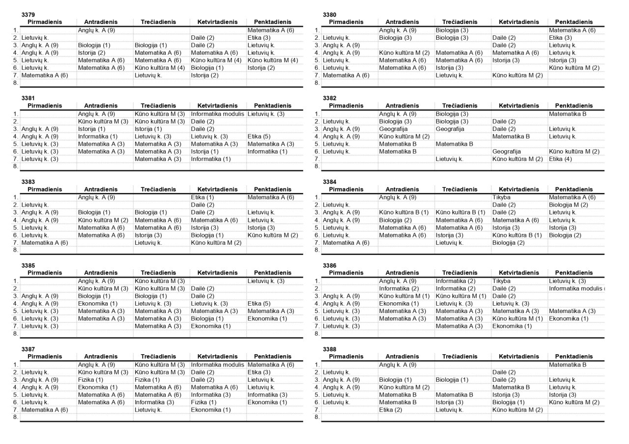 2025–2026 m. m. IV klasių mokinių pamokų tvarkaraščiai II pusmetis