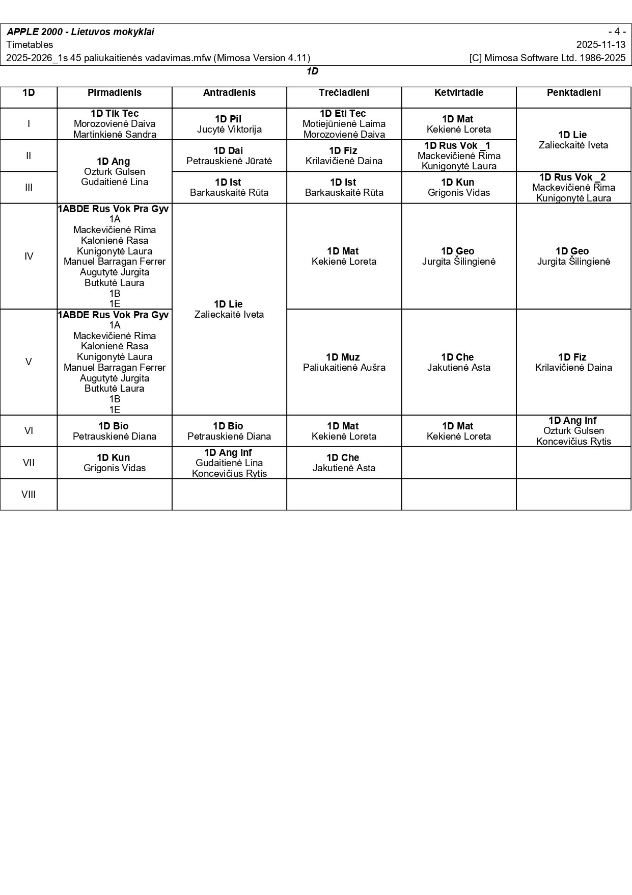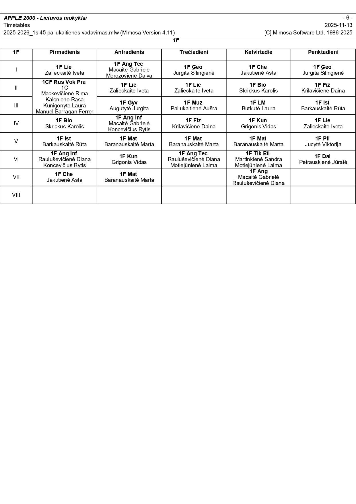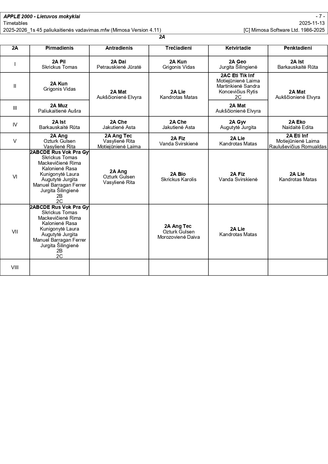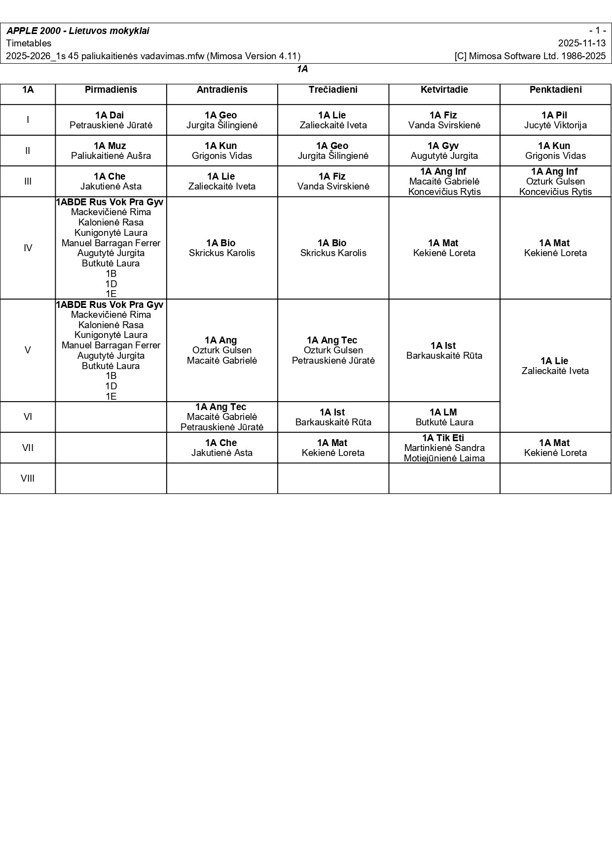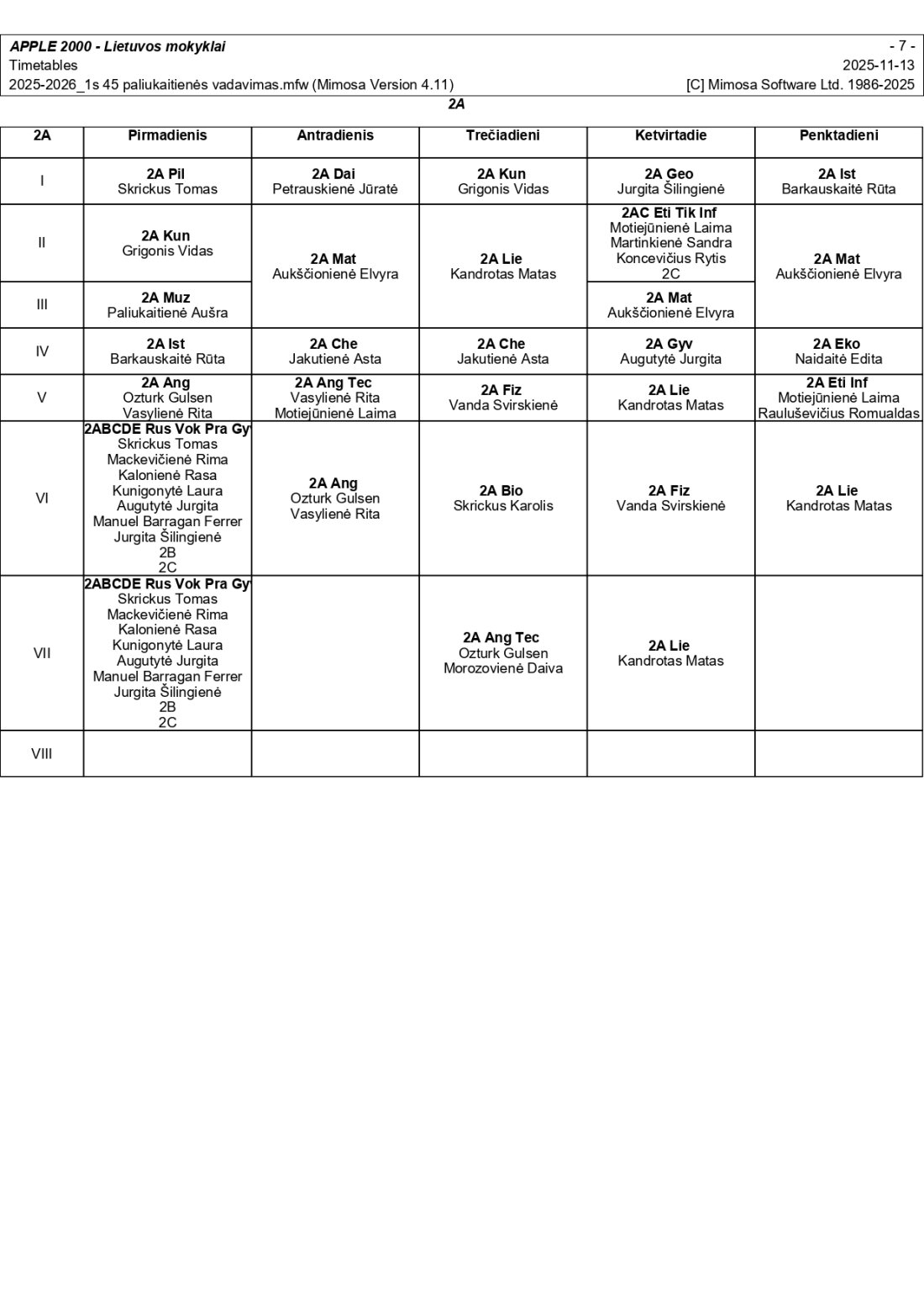 2025–2026 m. m. I-II klasių mokinių pamokų tvarkaraščiai I pusmetis nuo 2025-11-17